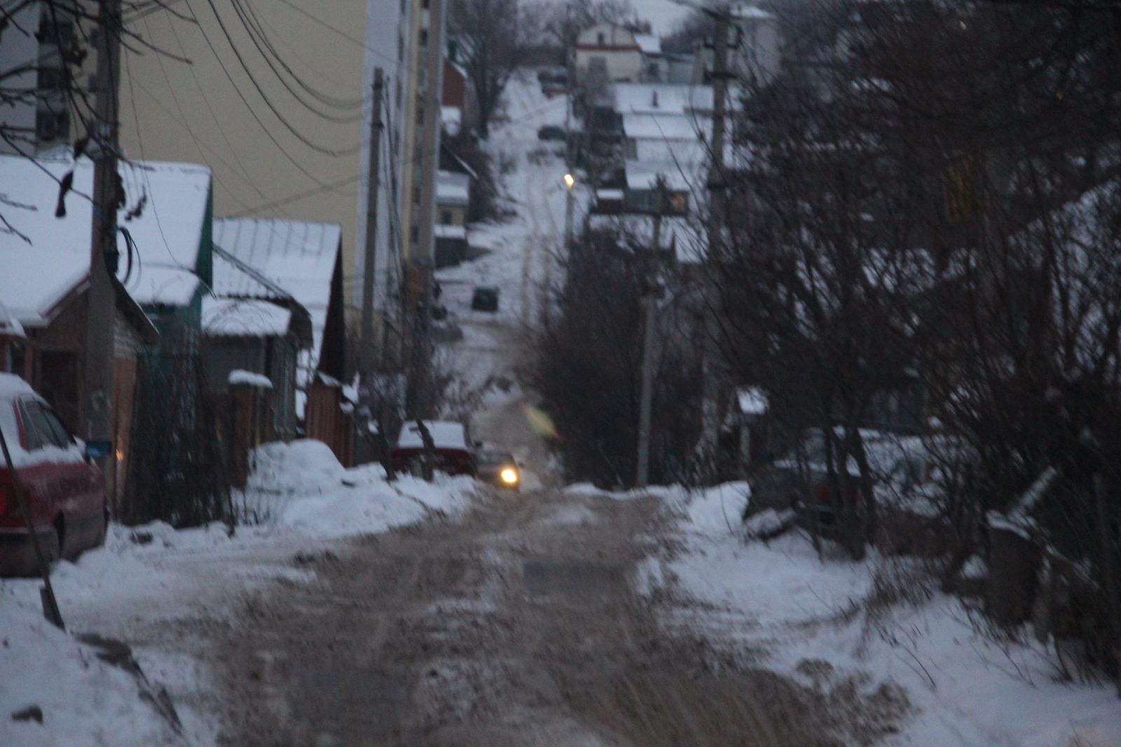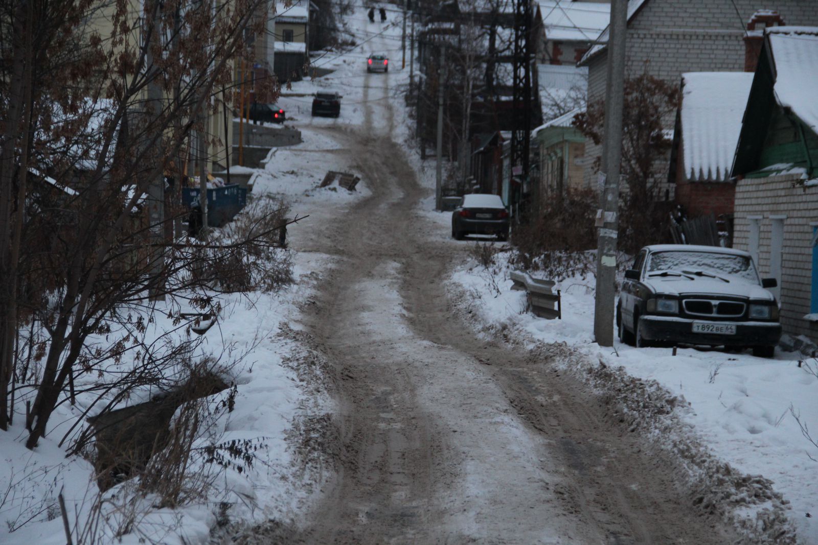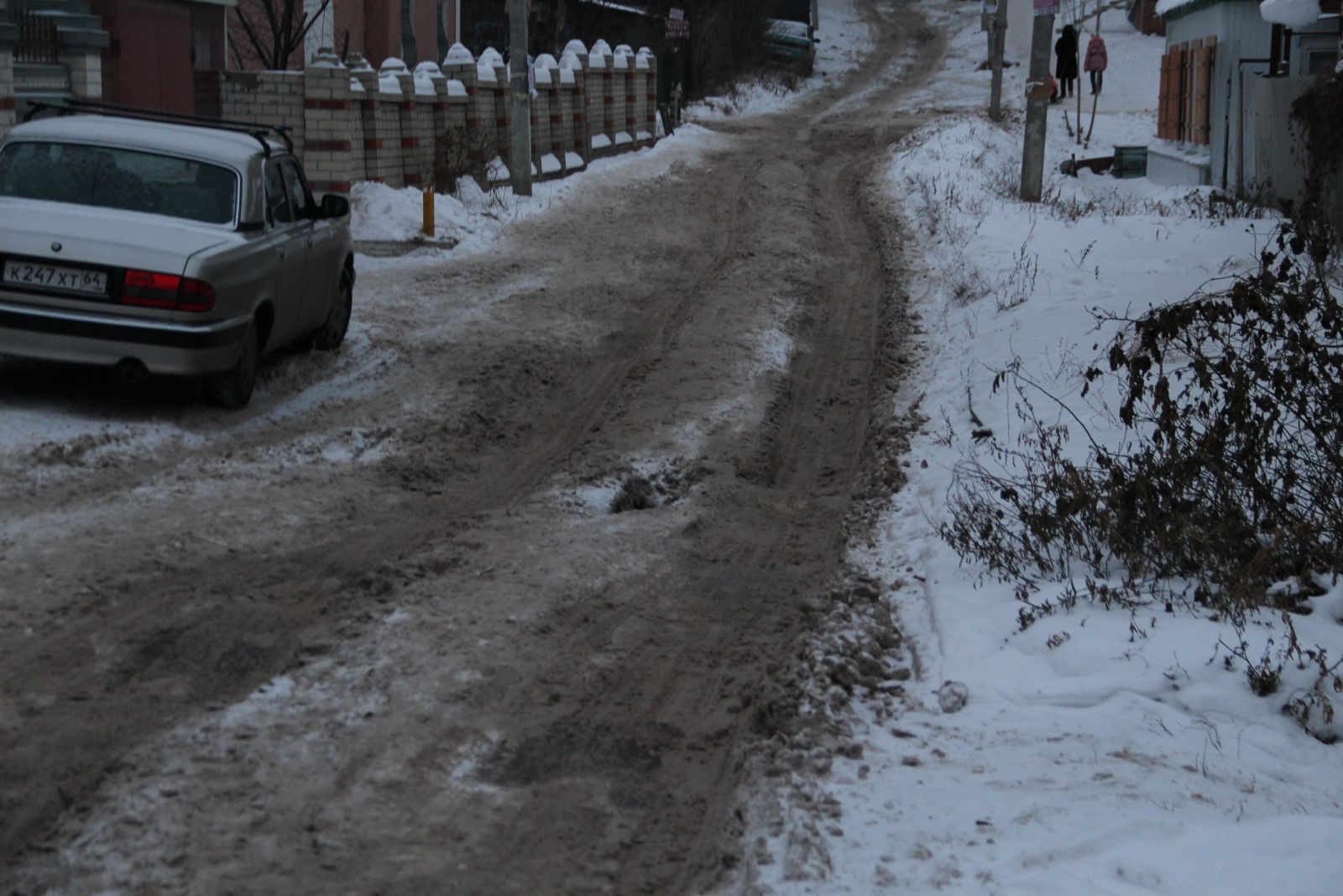 Четыре года назад в частном секторе в Октябрьском районе Саратова на улице 1-я Поперечная между 4-й и 5-й линиями выросли несколько многоэтажных домов. И если дома уже давно построены и обжиты, то добираться к ним приходится все по той же разбитой дороге, не рассчитанной на возросшие нагрузки. Как сообщили в «Дорожный контроль» местные жители, в зимний период машины ползут по единственной колее, продавленной в выпавшем снеге. Еще одним препятствием служит речка, протекающая между улицами 1-я Поперечная и Клочкова, через которую мостки в виде бетонных плит были перекинуты еще в советские времена, и водителям необходимо быть предельно внимательными, чтобы проехать по ним, не угодив в скрытые снегом прогалы.