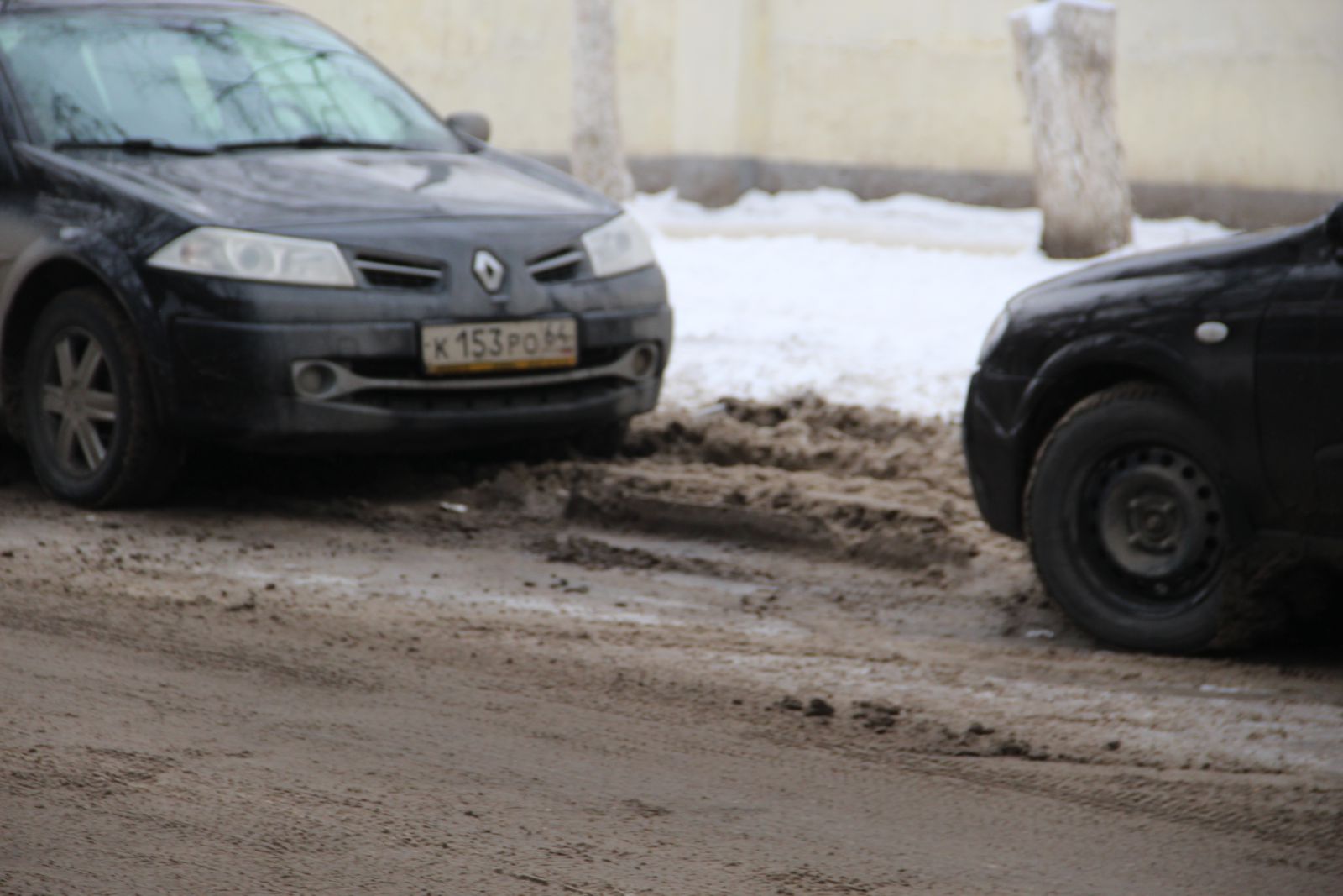 Неубранный снег превращает Аткарскую в однополосную улицу