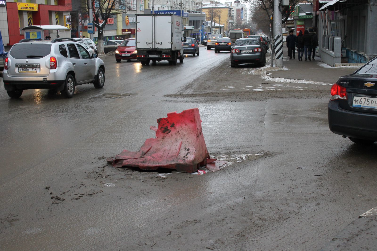 На пересечении улиц Мичурина и Чапаева в центре Саратова водители рискуют целостностью своих автомобилей из-за открытого смотрового колодца. По словам местных жителей, такая ситуация продолжается уже второй месяц, но пока никаких мер не было принято.