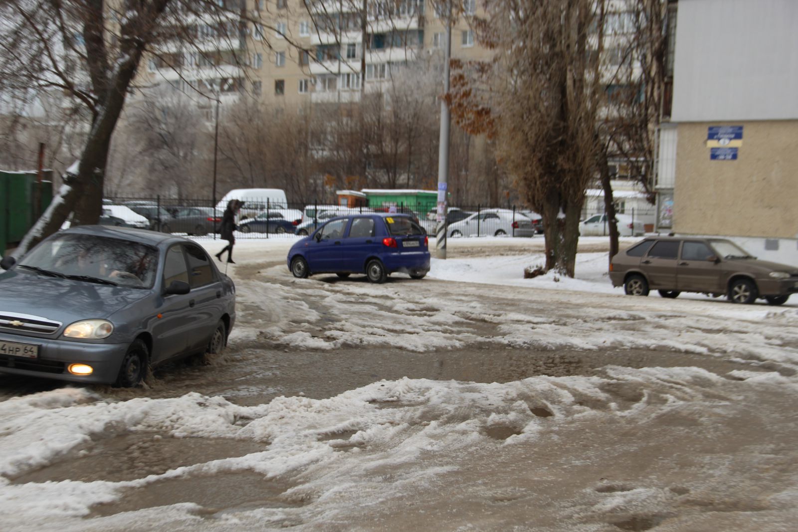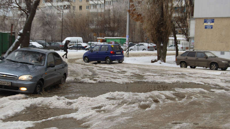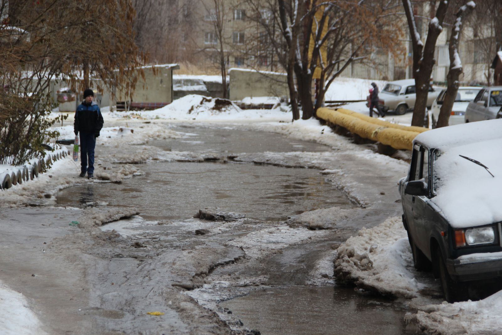 Несмотря на морозы, у подъездов номер 7 и 8 до сих пор стоят огромные лужи, через которые не рискуют проезжать водители, а многие пешеходы ищут обходные пути, перебираясь через водопроводные трубы. Затопленной оказалась также придомовая парковка, где стоят вмороженные в лед автомобили и участки прилегающих дорог по улицам Гусельской и Клещевской. Движение по ним значительно затруднено.