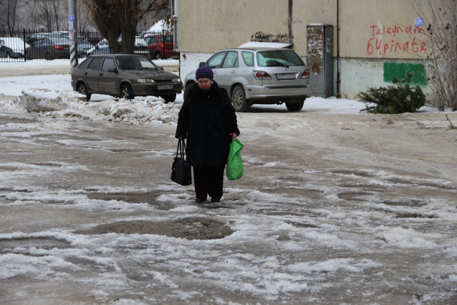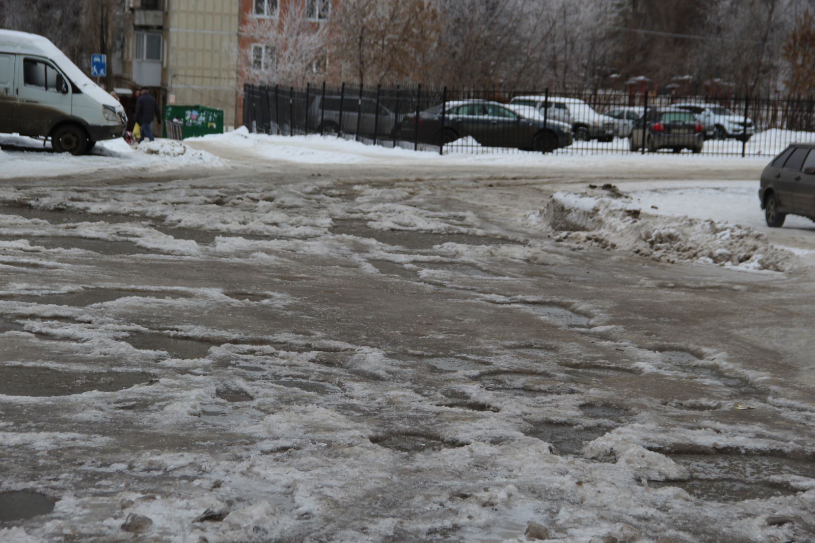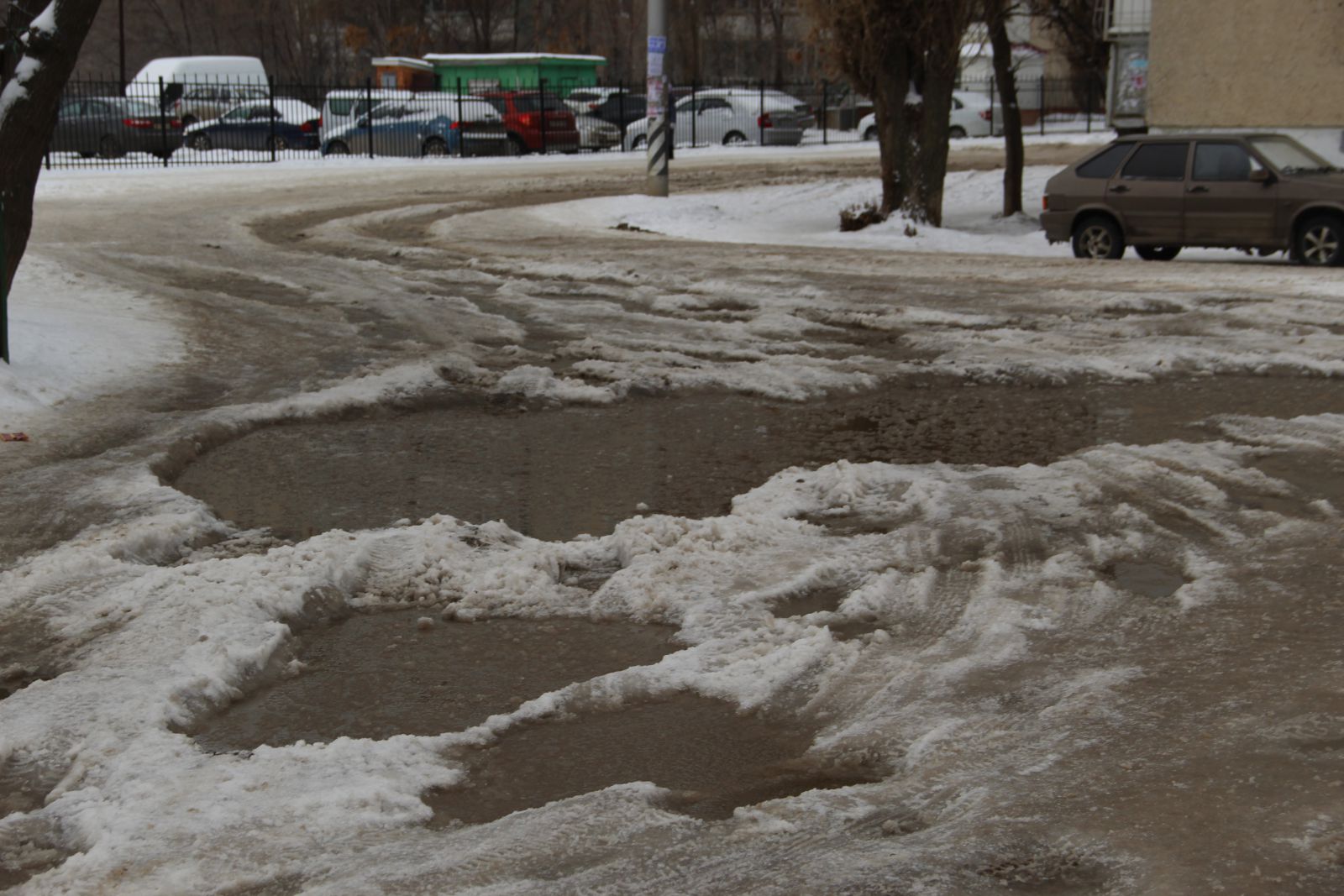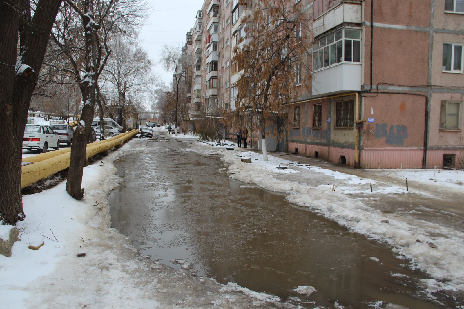 В Ленинском районе двор и две дороги скованы льдом и водой