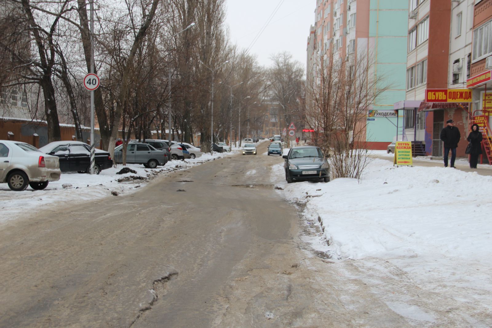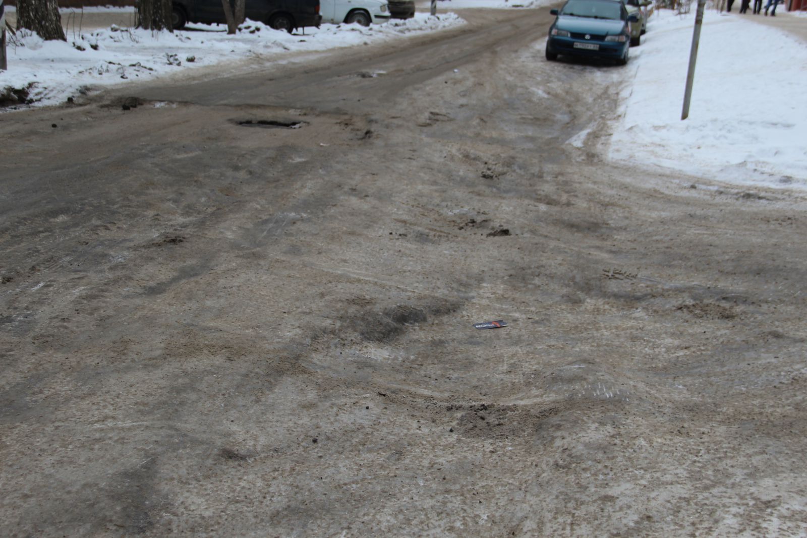 Из-за припаркованных машин улица сужена до одной полосы для движения, при этом и она не очищена от снега. Автолюбители передвигаются по колее, из которой местами трудно выехать, чтобы разъехаться встречным машинам. Ближе к проспекту Строителей, на улице Осенней, до сих пор не убрана наледь, образовавшаяся после прошлогодней коммунальной аварии. Она значительно затрудняет движение, особенно для автомобилей с низкой посадкой. Также инспектор «Дорожного контроля» заметил, что началось разрушение асфальта рядом с люками, которые не подняли согласно нормам ГОСТа до уровня дорожного покрытия во время проводившегося ремонта дороги в октябре месяце.