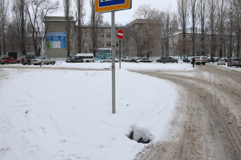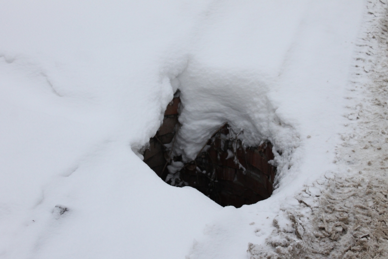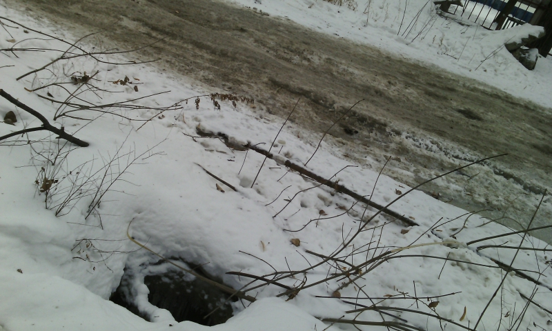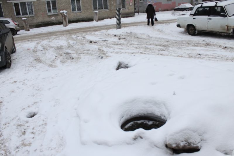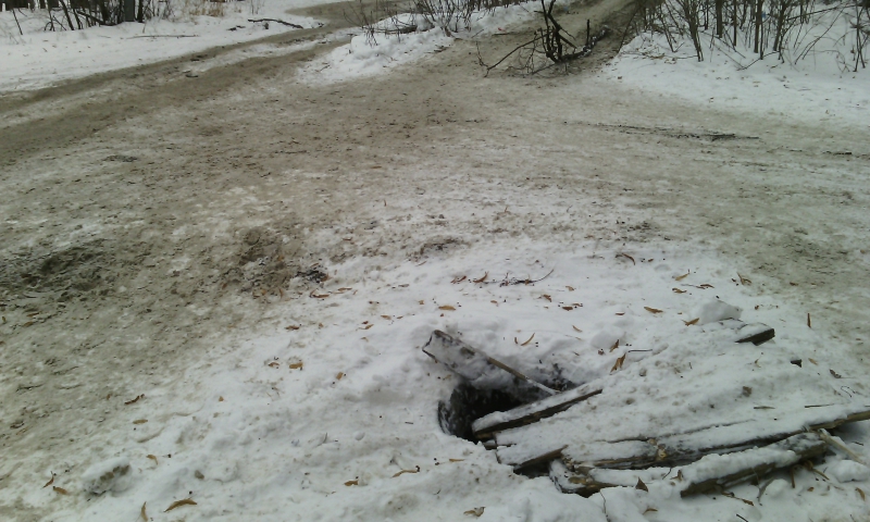 От себя добавим, что вся Заречная покрыта льдом, на дороге колея. Открытых люков там аж три, один из них находится прямо на пешеходном переходе у школы. Другой - возле больницы, на территории, которую посетители используют в качестве парковки. Еще один на тротуаре, возле института сельской гигиены. Причем он прикрыт ненадежными досками, которые под снегом невозможно разглядеть, что превращает открытый колодец в настоящую ловушку.
