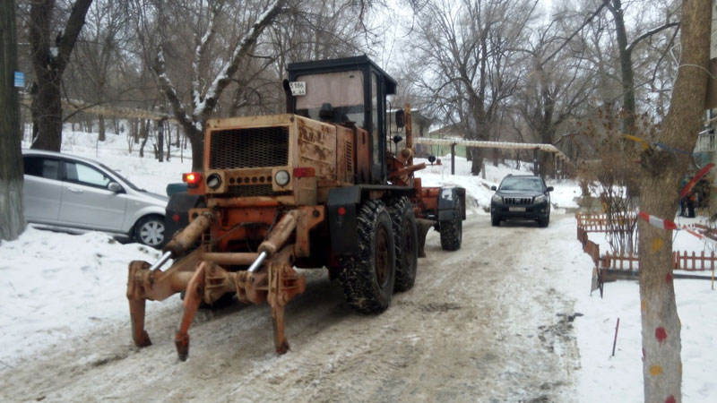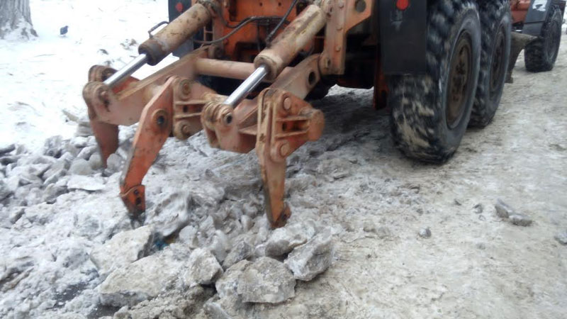 В Заводском районе Саратова идут работы по очистке улицы Азина и прилегающих дворовых территорий от наледи, образовавшейся в результате коммунальной аварии на сетях МУПП «Саратовводаканал». Двор дома №71 по улице Азина, попавший в ледяной капкан, очищают при помощи специализированной техники – автогрейдера и гидромолота.