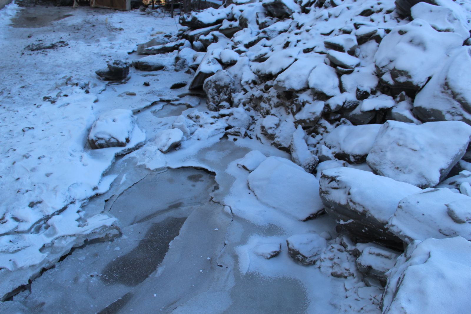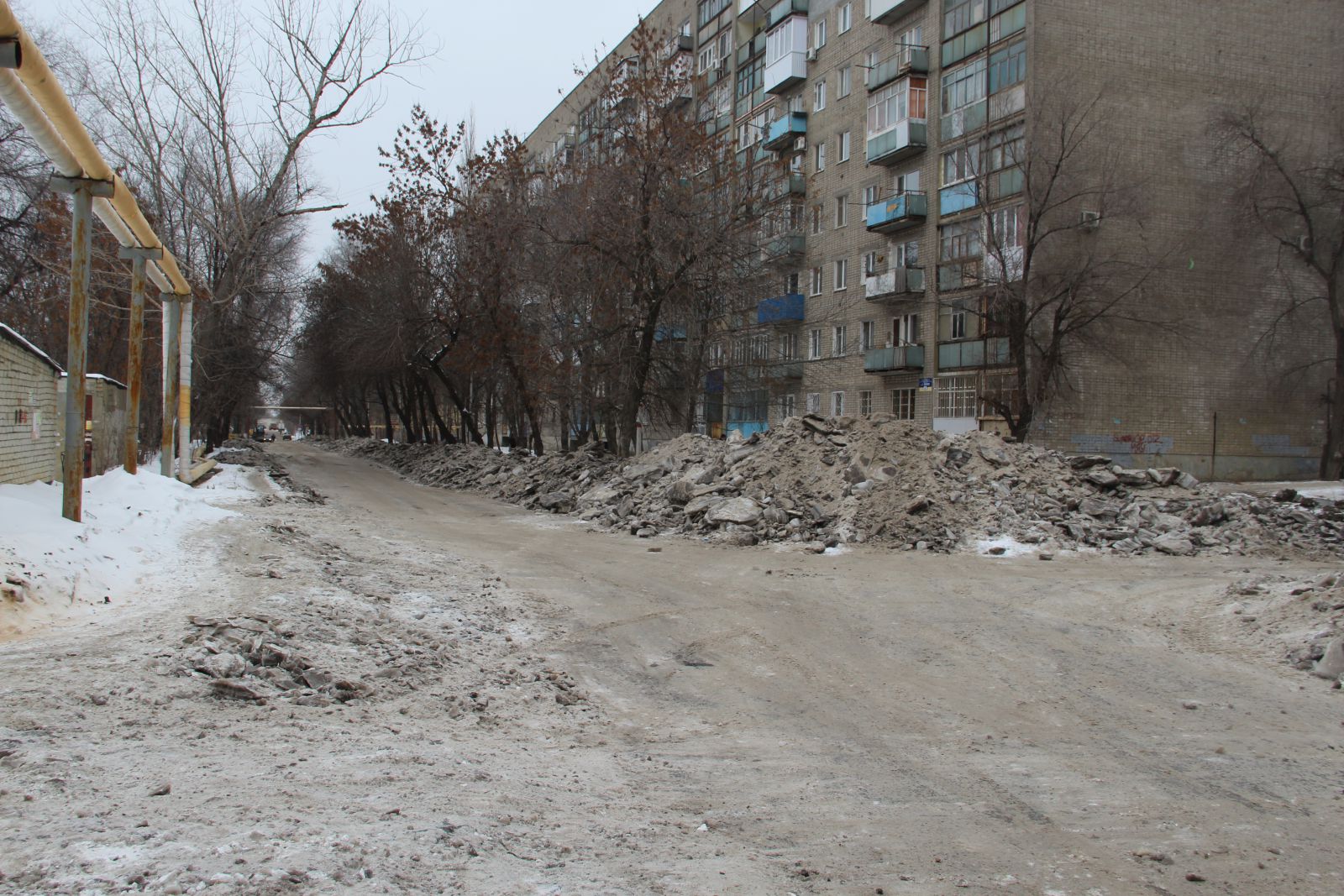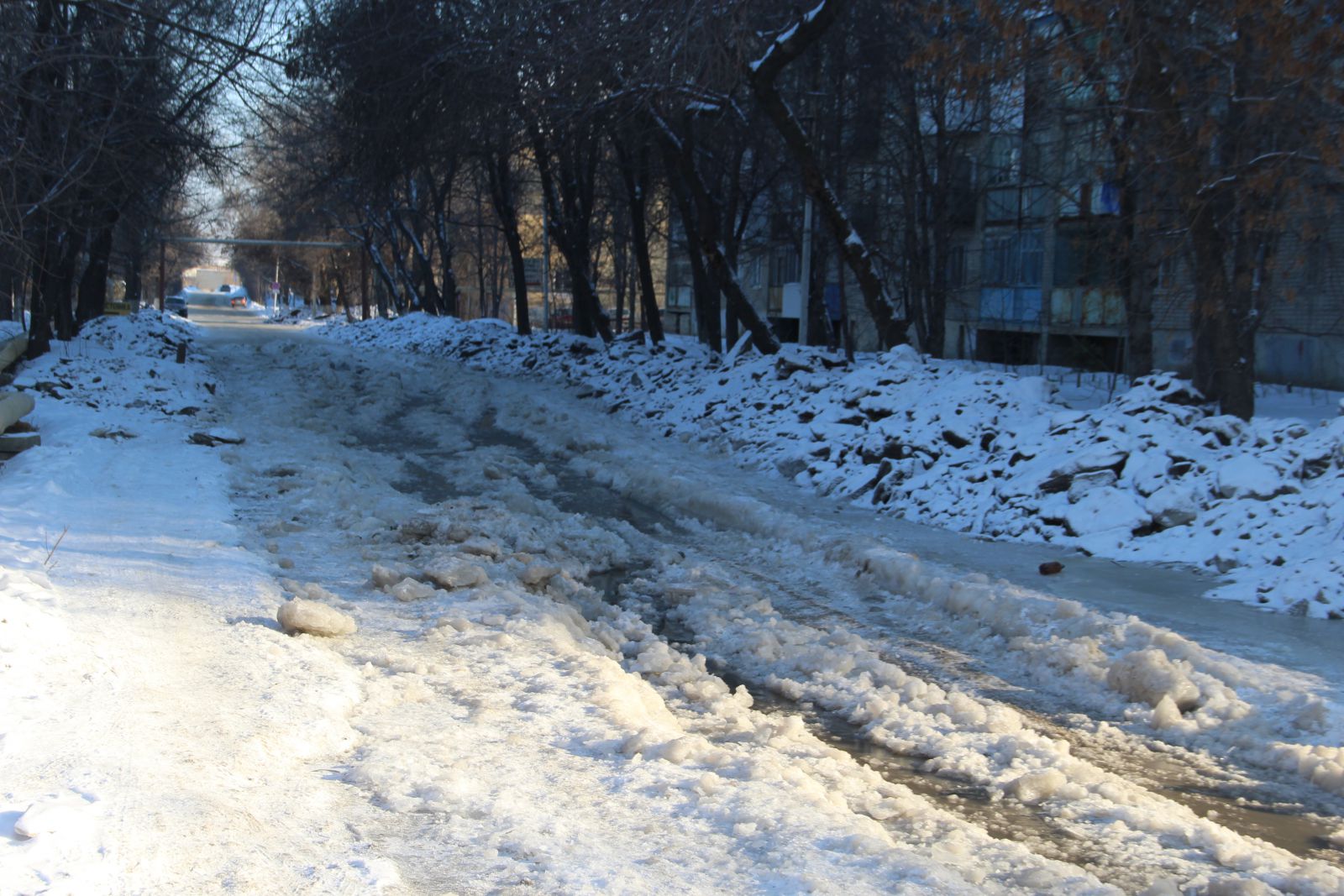 Несколько дней назад дорожные службы закончили расчищать улицу 1-ю Прокатную, что в Ленинском районе Саратова, от многосантиметровой наледи, образовавшейся после коммунальной аварии, которую местные жители нарекли «коммунальной катастрофой». По краям дороги после расчистки дорожного полотна остались метровые, а иногда и выше, валы из колотого льда. А