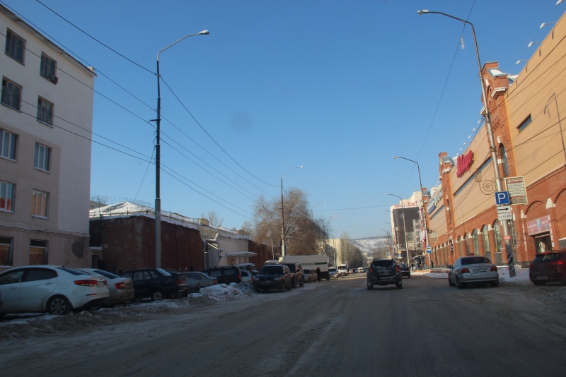 Улицу Чапаева почему-то очистили от снега фрагментарно: от Ильинской до Соколовой — все хорошо, а дальше на горе, в сторону 1-го Магнитного проезда, она покрыта слоем снега с накатанными в нем колеями. Примерно также выглядит и сам 1-й Магнитный, где снег не удосужились убрать еще с прошлого сильного снегопада. Между тем, эта дорога пользуется заслуженной популярностью у водителей, ведь она позволяет выйти на улицу Танкистов, минуя пробки в центре.
