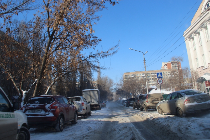 Припаркованный личный транспорт доставил много неудобств уборщикам на Рахова, Рабочей, Кутякова. Там от снега очищаются лишь свободные от авто полосы. В летние дни, например, на Кутякова могут припарковаться автомобили, и еще остается по две полосы для движения в каждую сторону. Теперь же крайние полосы покрыты слоем снега и сугробами, в которые превратились брошенные машины, и уже вторым рядом возле них саратовцы паркуют личный транспорт, оставляя для движения всего по одной полосе. Из-за этого на дороге образуется затор, которому способствуют в добавок повороты на парковку «Триумф-молла» и на рынок на Рахова.