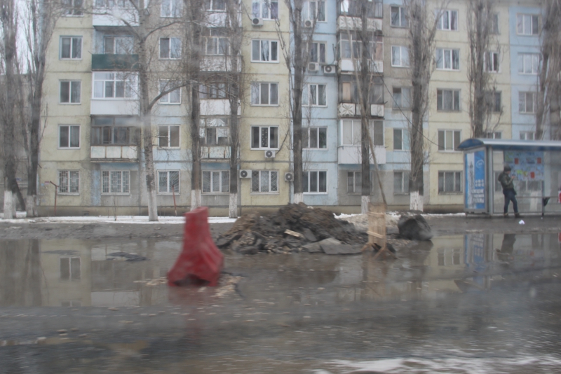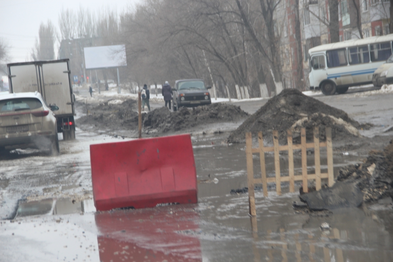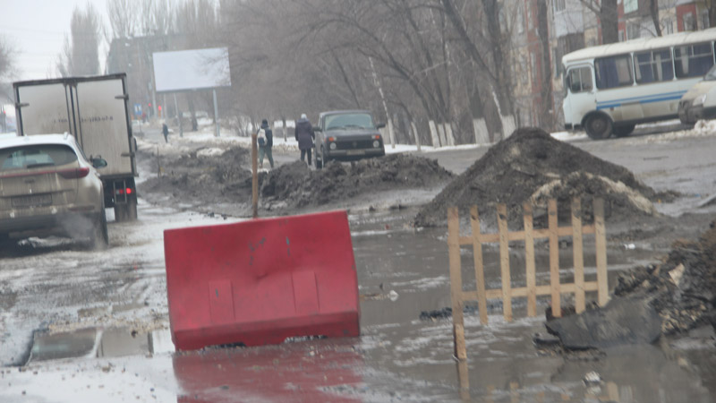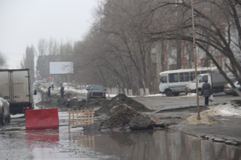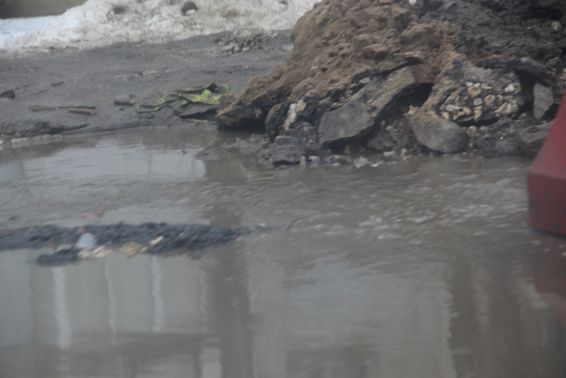 После очередного автомобиля, провалившегося в яму на улице Антонова, образовавшуюся на месте вскрышных работ, опасное место обозначили дорожным водоналивным барьером. Талые воды, затопившие участок дороги у остановки «Геологический колледж», сделали почти неразличимыми границы опасного препятствия, жертвами которого за последние дни стало как минимум три автомобиля, в том числе пассажирский автобус маршрута №53 и грузовик.