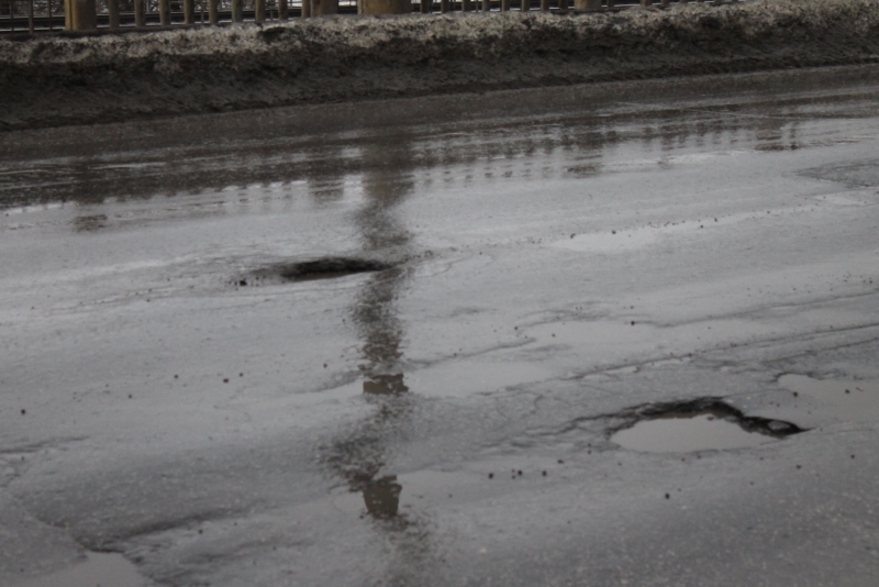 С приходом оттепели на мостах Саратова обнажились многочисленные ямы