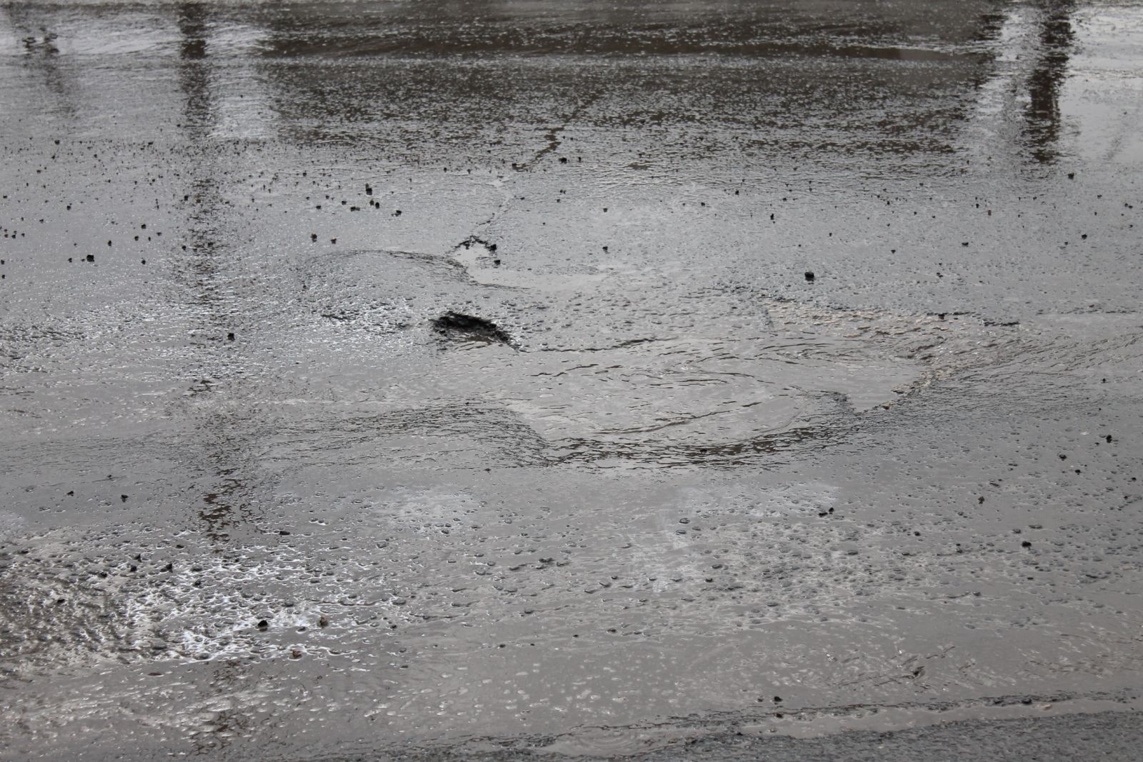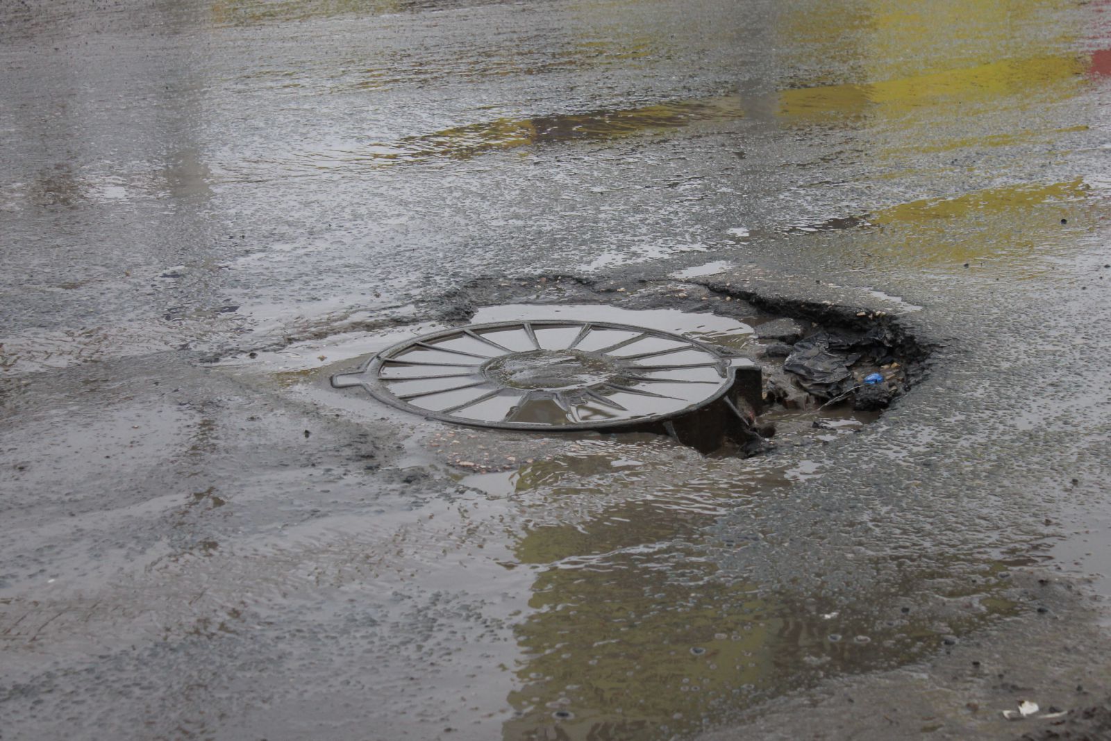 На подъезде к улице Вокзальной также начали образовываться ямы на участках карточного ремонта и вокруг смотрового колодца, некоторые из них замаскированы потоками талой воды.