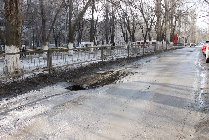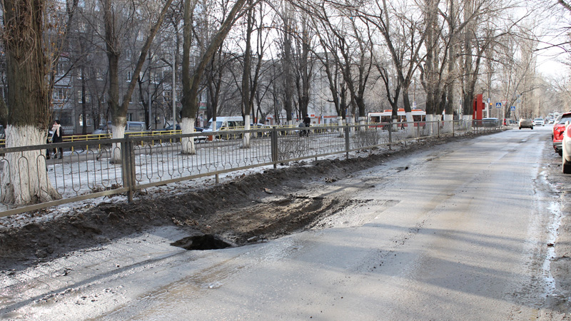 В Октябрьском районе Саратова на улице Рахова возле дома 15/31 у заброшенного места вскрышных работ образовался провал. Опасное препятствие ничем не огорожено. Если в светлое время суток дыру в дорожном покрытии можно заметить, то с наступлением сумерек неопытный автолюбитель может с легкостью угодить в дыру. По рассказам местных жителей, яма находится здесь ещё с зимы, с выпадением снега на её месте образовался сугроб, и дорога сузилась вдвое. Само место вскрышных работ стоит без восстановления асфальтобетонного покрытия ещё с осени 2016 года.