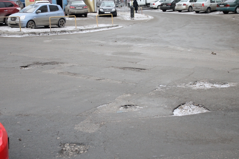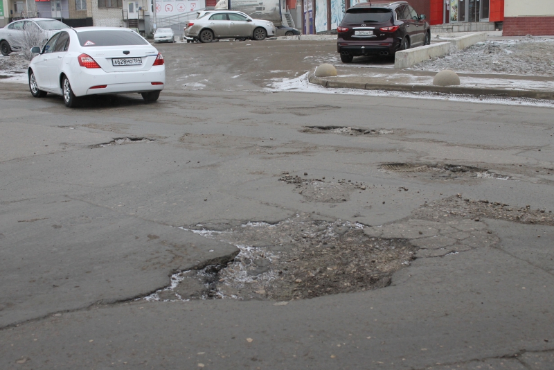 Основное скопления выбоин и ям находится напротив городской поликлиники №20 и вдоль торгового центра Квадро.