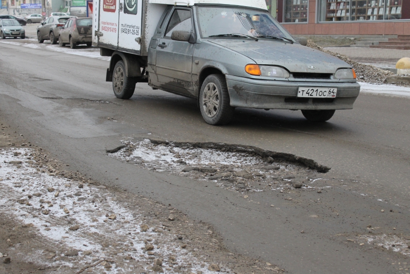 Сейчас на Усть-Курдюмской ямы покрыли всю дорогу, так что водителям приходится постоянно маневрировать, чтобы не повредить подвеску автомобиля и не пробить колеса. В некоторых местах объехать препятствие невозможно, и подвески авто выбивают дробь не хуже железнодорожного состава.