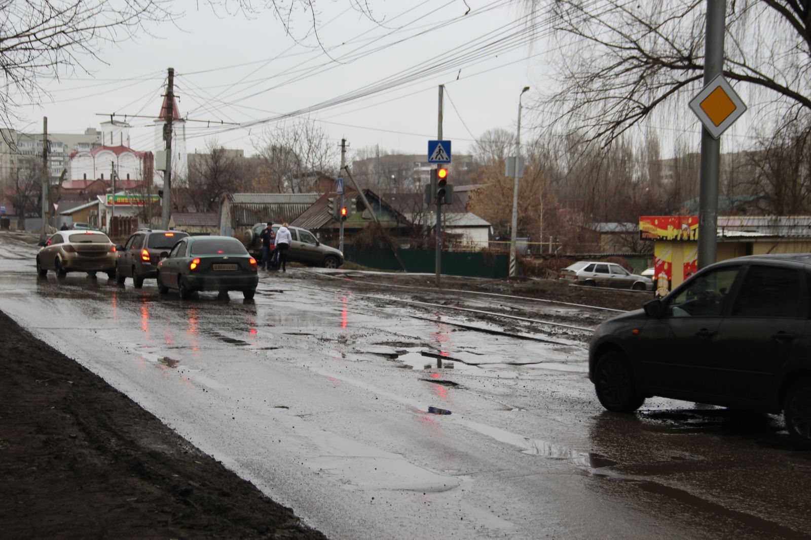 И самый опасный и оживленный переезд рядом с Травяной улицей, где соединяются потоки по Огородной.