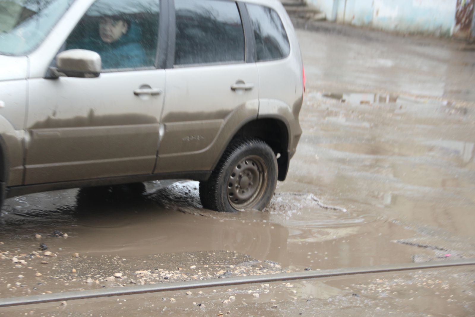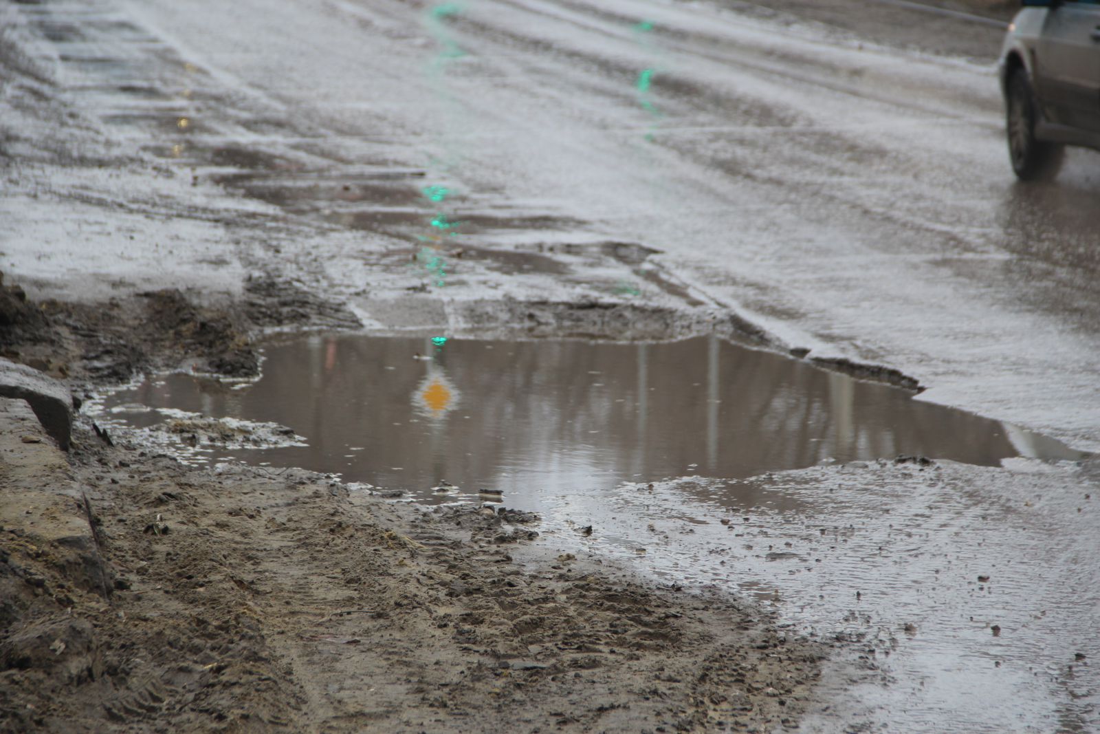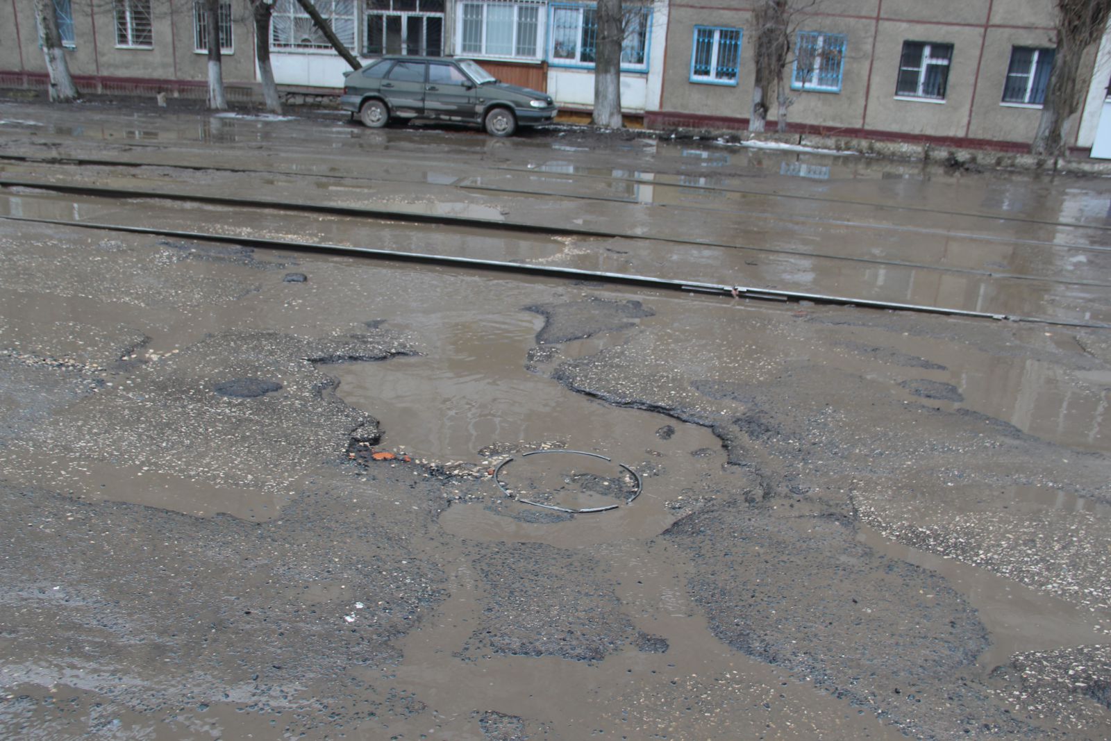 Водители вынуждены ехать по ним, даже не пытаясь маневрировать, так как разрушено полотно по всей ширине дороги.
