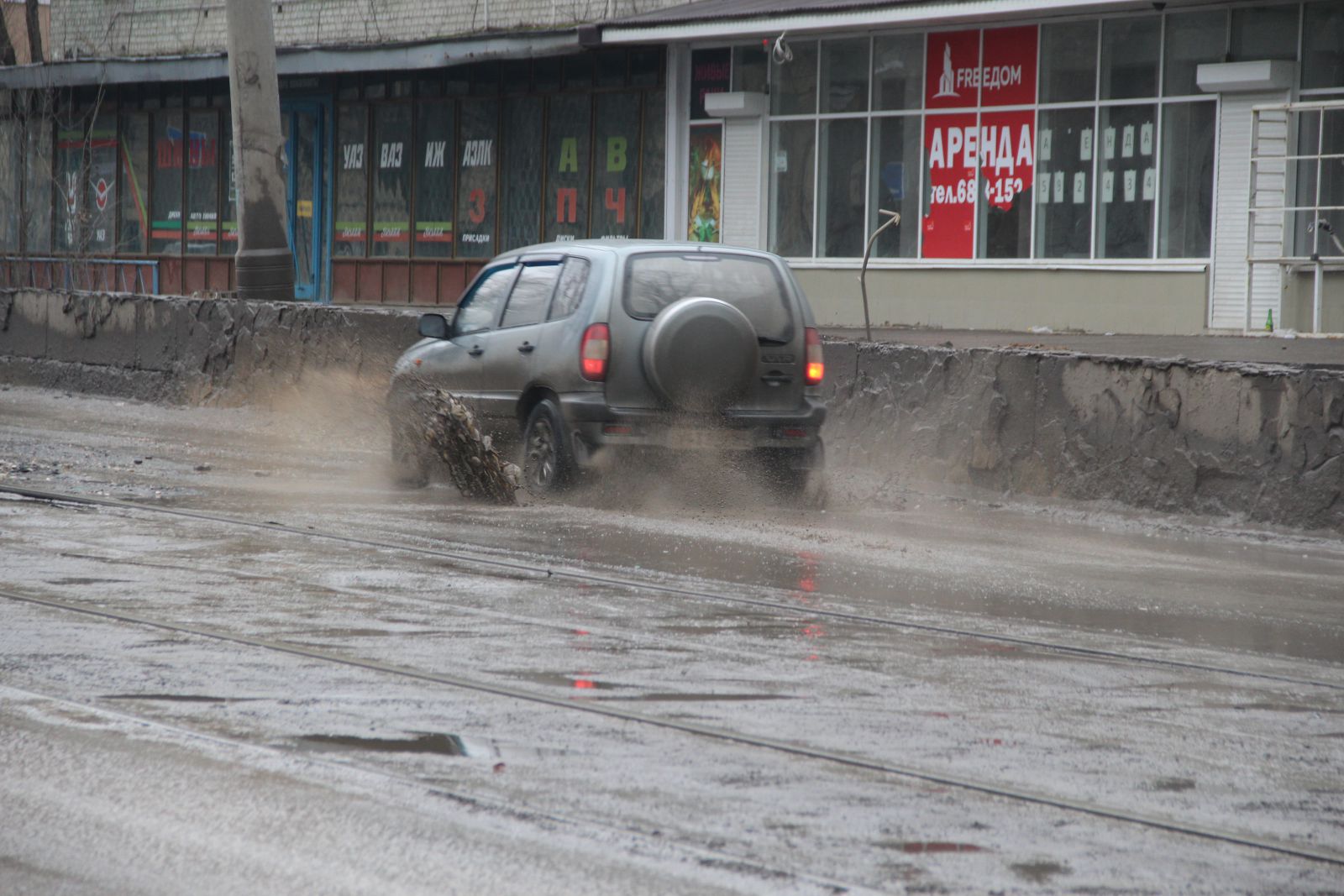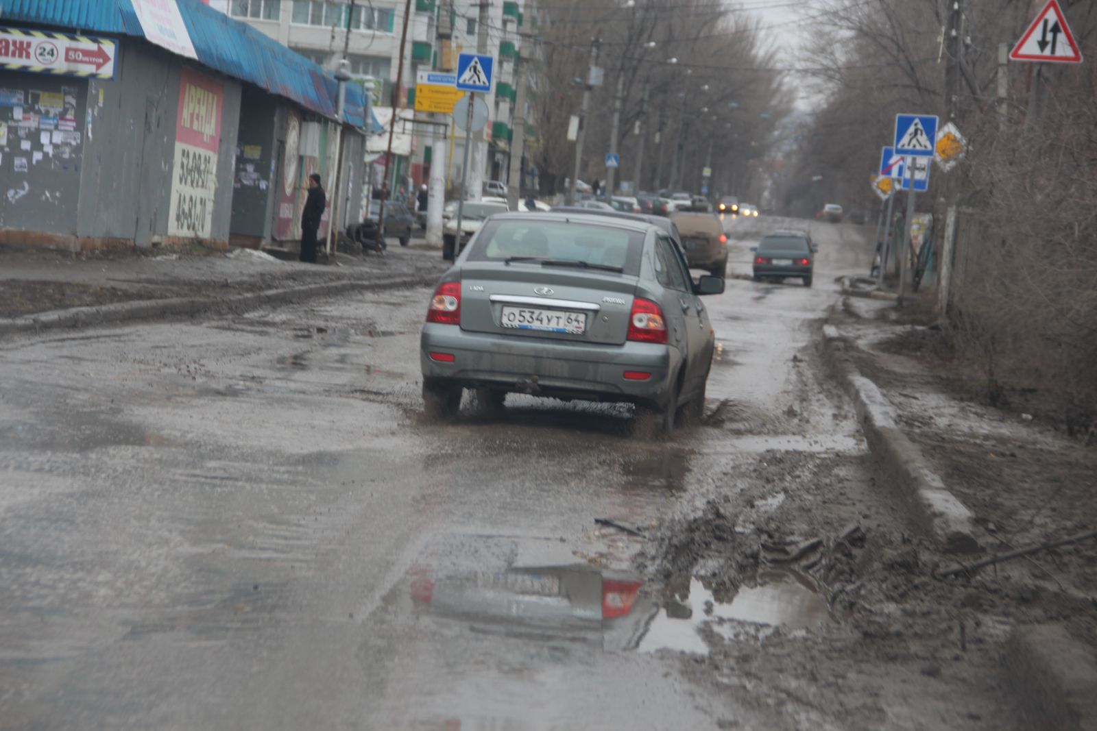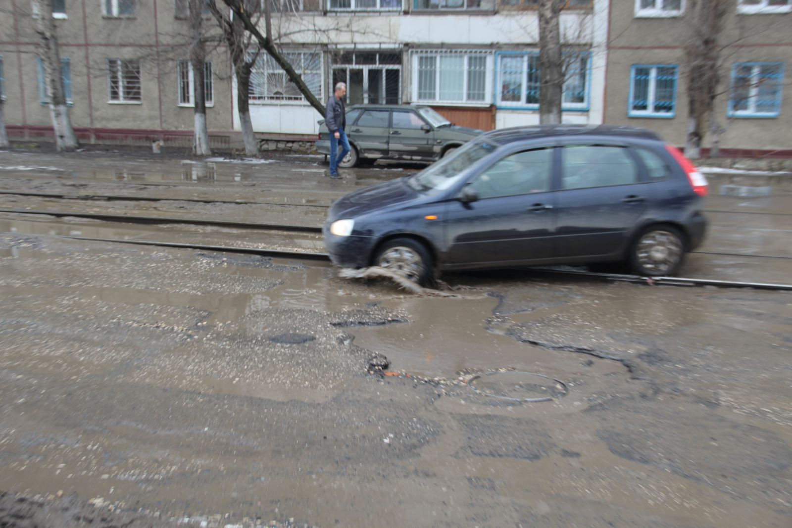 Водители вынуждены ехать по ним, даже не пытаясь маневрировать, так как разрушено полотно по всей ширине дороги.