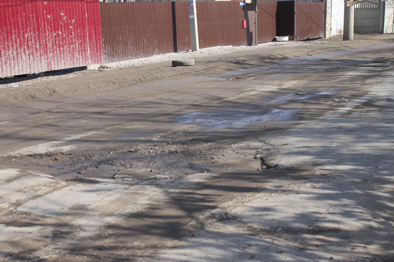 В «Дорожный контроль» обратилась местная жительница Наталья Николаевна. Вот что она рассказала в своем обращении: «Всю зиму к нам свозили снег со всего города на грузовиках, массивность машин и повредила дорогу, также из-за таяния снежных масс на дороге образовались лужи с примесью песка и грязи, скрывающие дефекты дорожного покрытия».