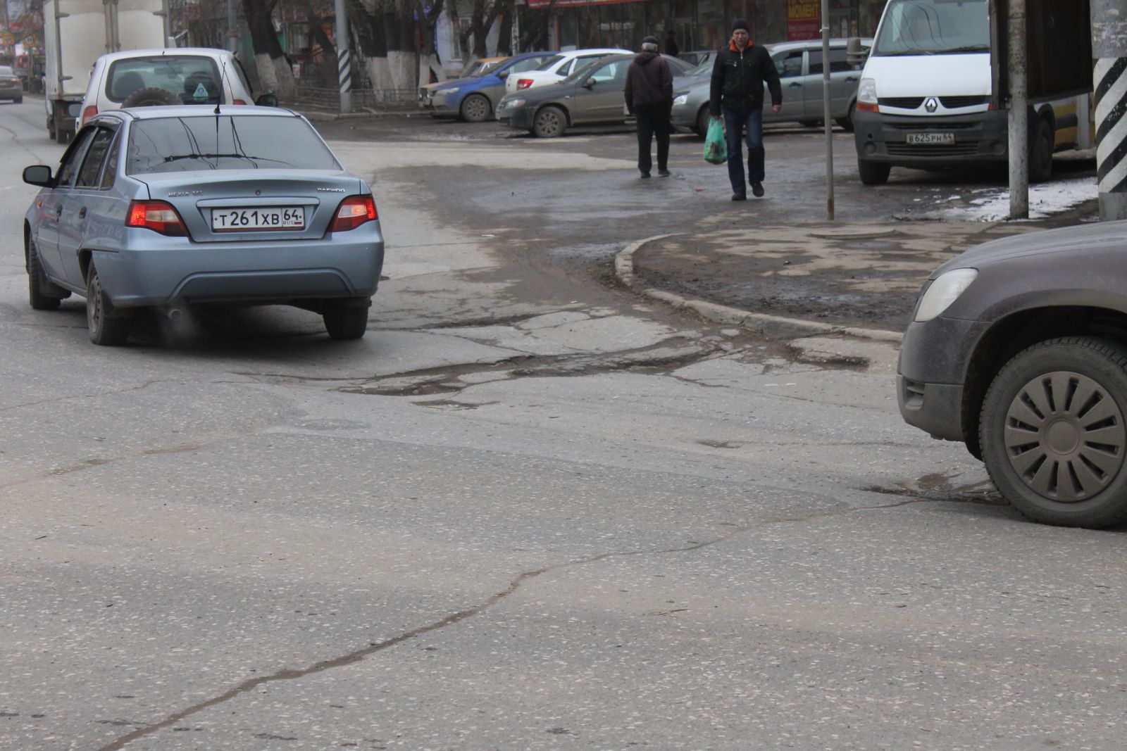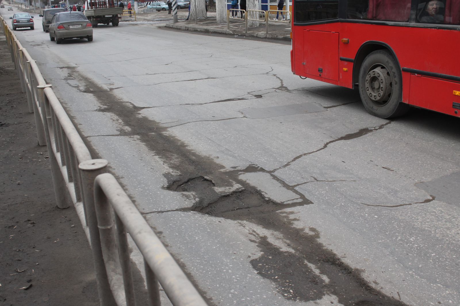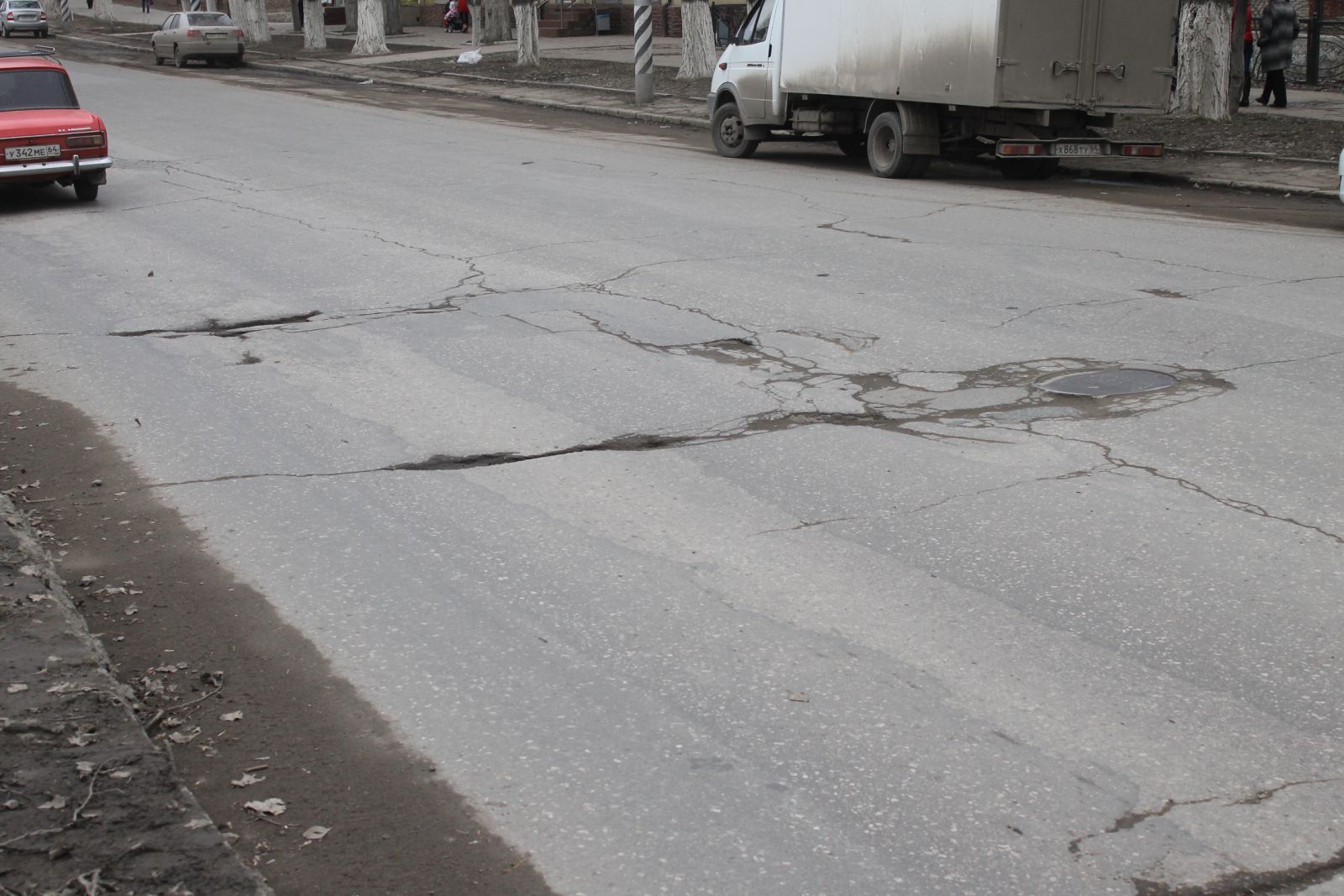 Еще хуже ситуация обстоит на полосе движения по направлению к улице Крымской. На данном отрезке дороги уменьшается количество трещин в асфальте, но увеличиваются ямы, покрывающие всю дорогу. В основном, ямы возникают на местах старых латок.