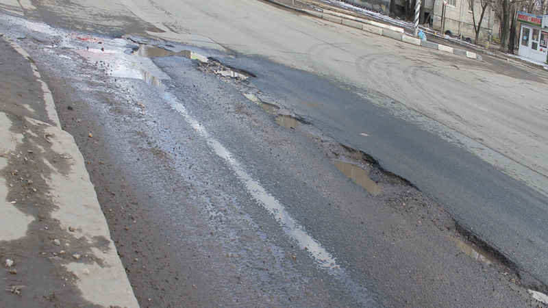 В этом месте образовались глубокие ямы, скрытые водой. Некоторые из них настолько глубоки, что в них практически полностью проваливается автомобильное колесо. Водители вынуждены перестраиваться на соседнюю полосу, чтобы хоть как-то миновать эту дорожную ловушку.