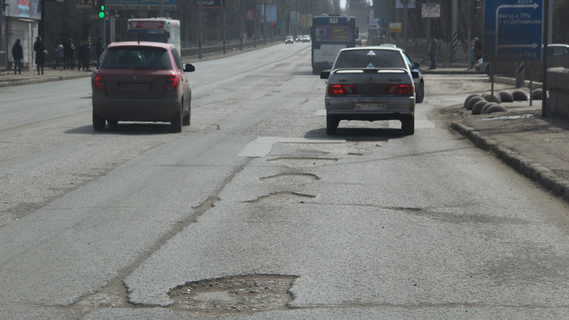 Вообще в сторону центра города найти ямы на дорожном полотне не составит труда: одиночные и групповые, протянувшиеся на несколько метров и совсем маленькие составляют компанию автолюбителям вплоть до Тракторной.