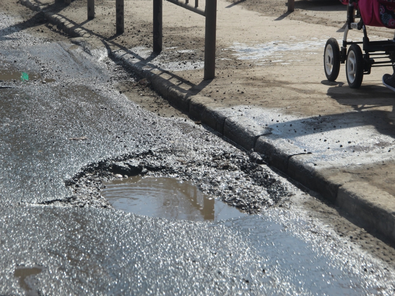 Выбоины, серьезно угрожающие целостности автотранспорта, образовались рядом с остановкой Вишневой, из-за чего общественный транспорт не рискует близко подъезжать к ней, высаживая пассажиров на проезжую часть.