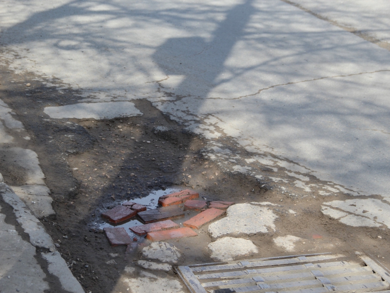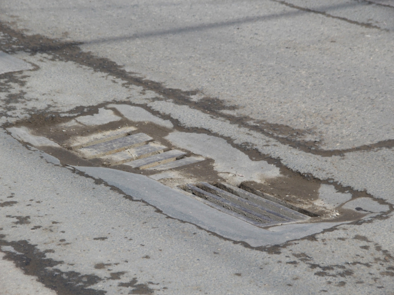 Не соответствуют ГОСТу дождеприемники рядом с остановкой «Торговый центр». Они не сильно выделяются на фоне многочисленных выбоин, покрывших этот участок дороги.
