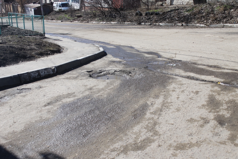 Глубокая яма, заполненная водой, становится неприятным сюрпризом для автомобилистов, поворачивающих с улицы Рогожина на Малую Соляную. Провалившись в нее колесом, легко повредить подвеску автомобиля.