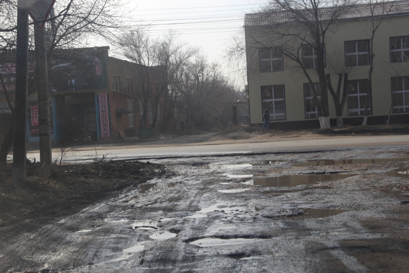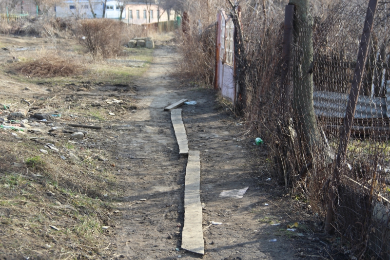 Многочисленные ученики музыкальной школы №4, проживающие в многоэтажных домах по 3-й Степной улице из-за перерытого перекрестка идут в обход мимо гаражей и спортивной площадки у школы №64. Последний квартал по Стахановской улице, утопающей в грязи, преодолеть, не испачкавшись, наиболее трудно. Только благодаря местным жителям, которые из подручных средств: веток, досок и старого шифера - проложили небольшие тропки, можно дойти до музыкальной школы.
