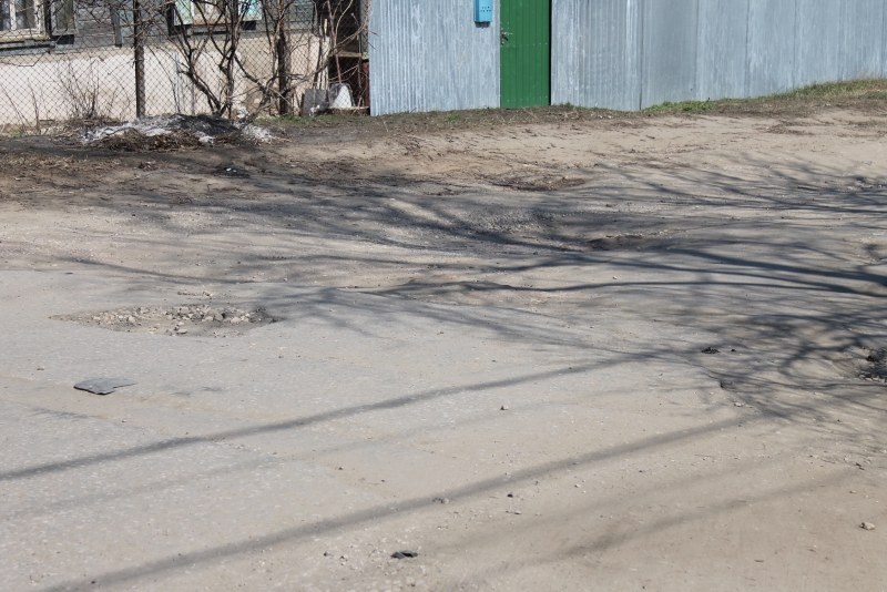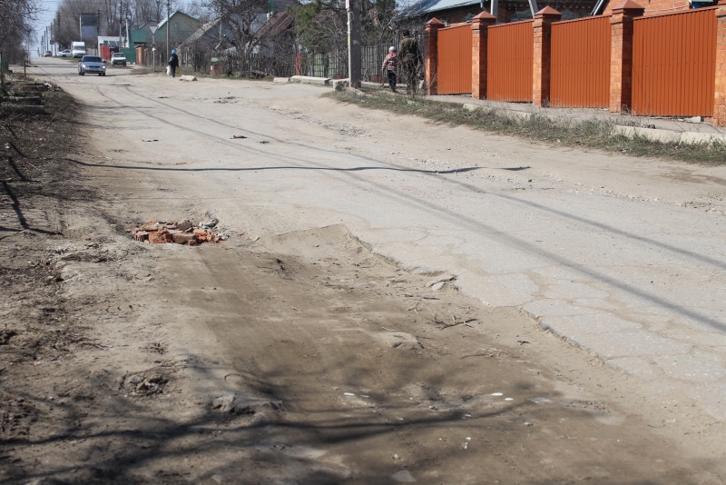 Улица Казанская больше похожа на дорогу из книг Александра Волкова, из-за обилия кирпичей, которыми стараются заложить наиболее глубокие ямы. Без них проехать по этой дороге было бы и вовсе не возможно, не зацепив днищем остатки дороги.