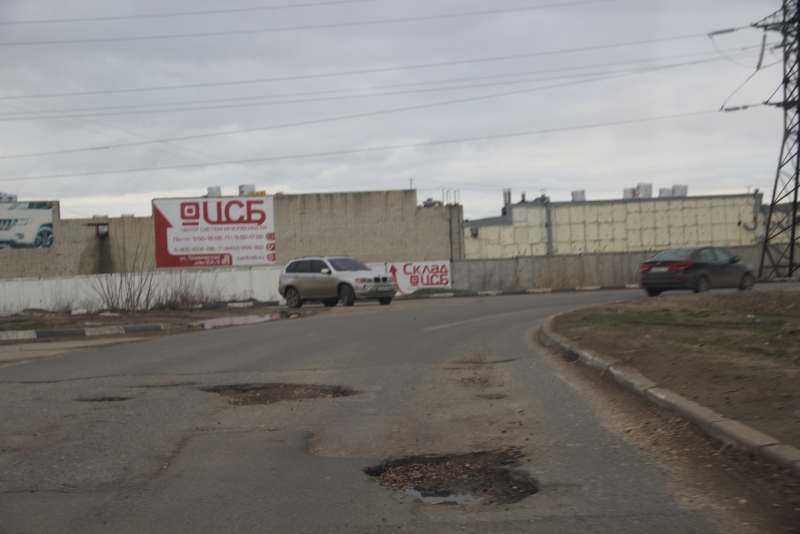 На дорожном полотне улицы Технической, что в Кировском районе города Саратова, рядом с остановкой маршрутного такси №91 «Микрорайон Звезда», образовались глубокие ямы. Водителям приходиться выезжать на встречную полосу, чтобы не повредить свои транспортные средства. Многие саратовцы сокращают по этой дороге путь между районами Молочки и Дачными, а в час пик объезжают пробку на СХИ.