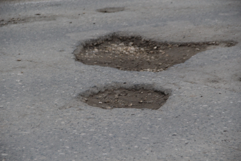 Если ехать по улице Технической со стороны конфетной фабрики, располагающиеся перед крутым поворотом выбоины делают труднопроездной одну из полос движения на этом опасном и загруженном автомобилями участке дороги.