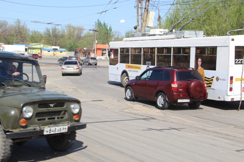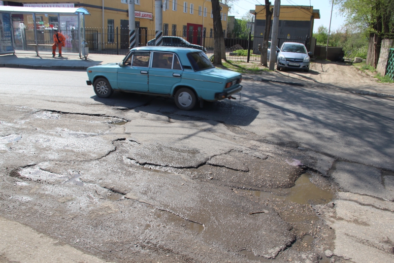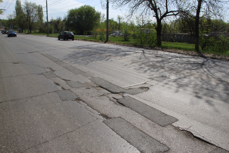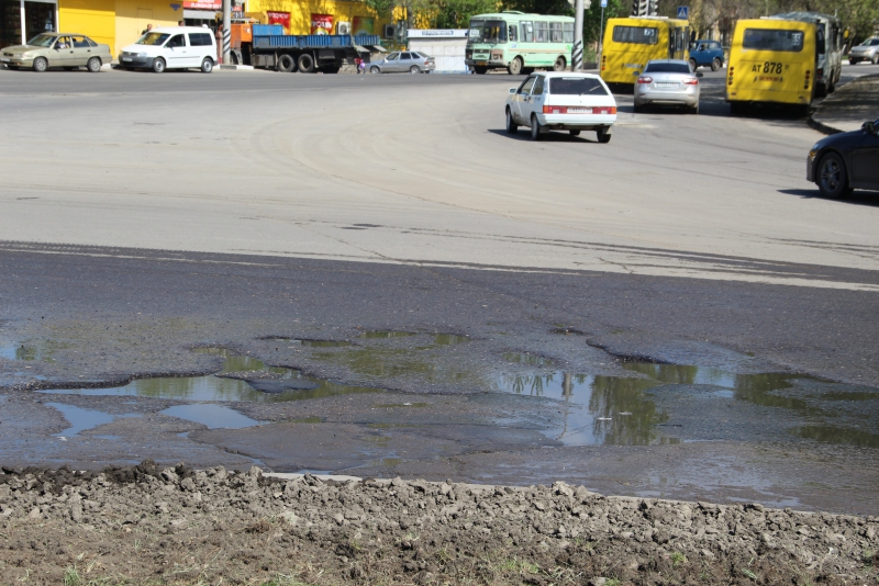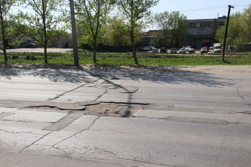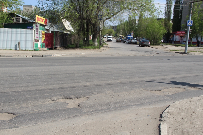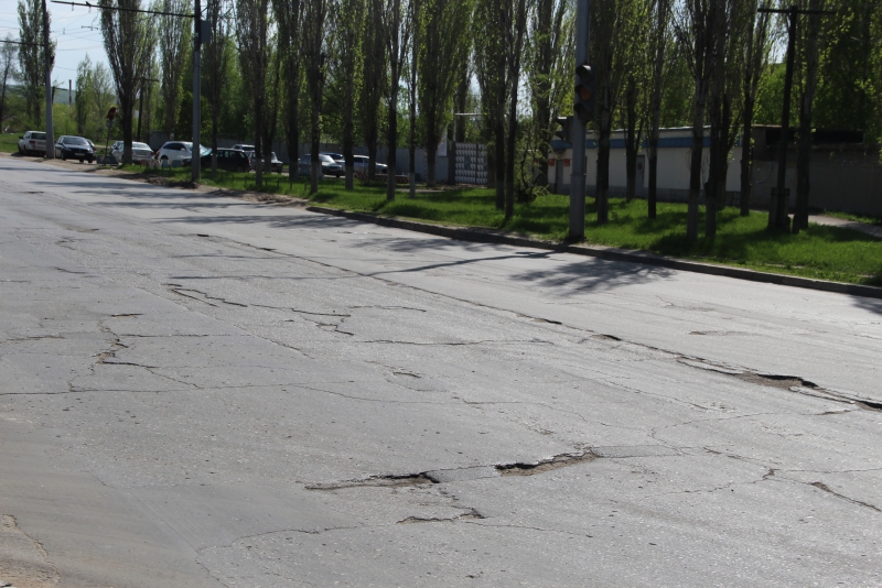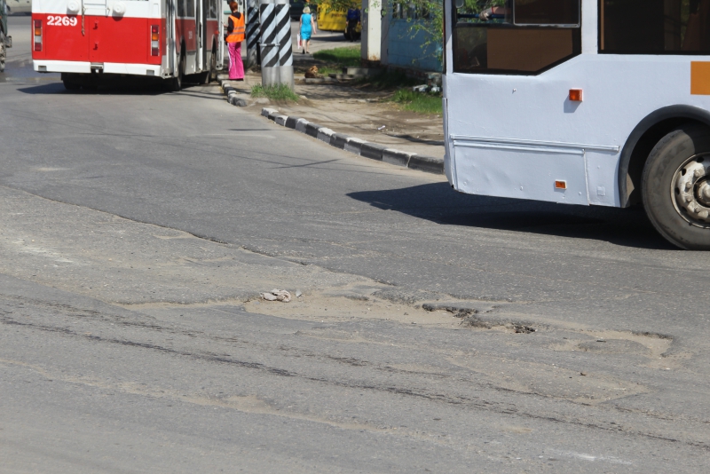Наиболее тяжелая ситуация сложилась на кольце разворота перед пересечением с Московским шоссе. Здесь почти не осталось целых кусков асфальта. Водителям приходится ехать по выбоинам, так как часто одну из полос занимают троллейбусы маршрута №11, у которого здесь конечная остановка.