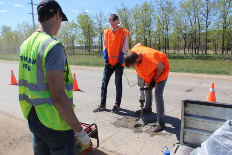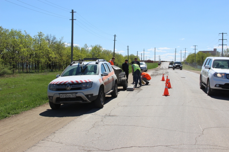 В поселке Усть-Курдюм Саратовского района Саратовской области сотрудники Поволжского учебно-исследовательского центра «Волгодортранс» СГТУ внедряли новую смесь асфальтобетона для проведения ямочного ремонта.