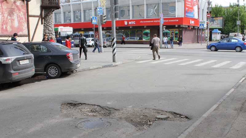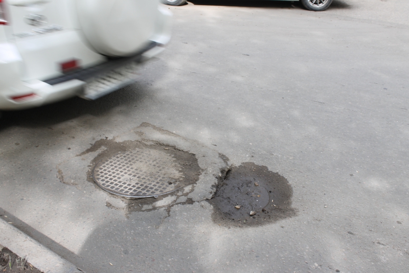 В начале апреля «Дорожный контроль» сообщал о проседании дорожного покрытия на улице Рахова рядом с домом №146. Глубокая впадина образовалась рядом со смотровым колодцем, преграждая одну из полос движения транспорта в сторону улицы Кутякова от пересечения с улицей Московской.