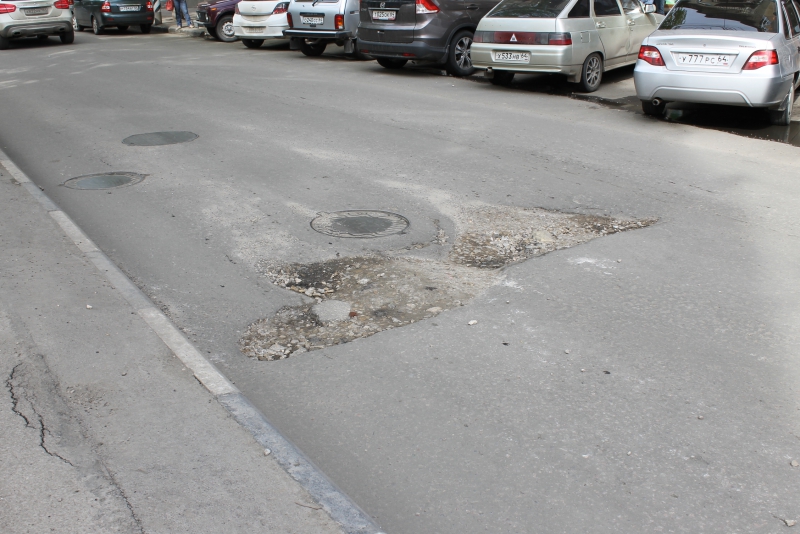 Больше месяца в центре Саратова не могут устранить провал на отремонтированной дороге