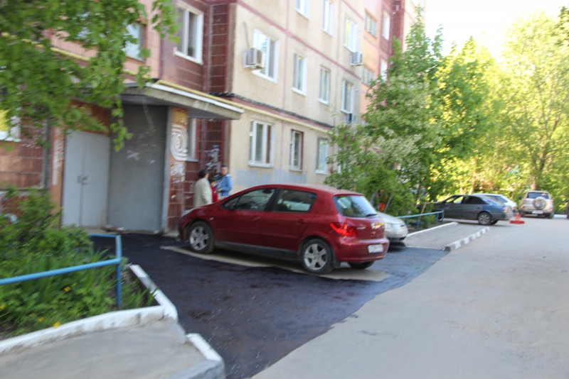 Работы у дома №7а закончили в благоприятные погодные условия, и вопросов к качеству уплотнения покрытия в прошлом году у «Дорожного контроля» не было. Благополучно асфальт пережил первую зиму и весеннюю капель. Тем не менее, подрядчик решил для профилактики дополнительно обработать входные группы пропиткой.