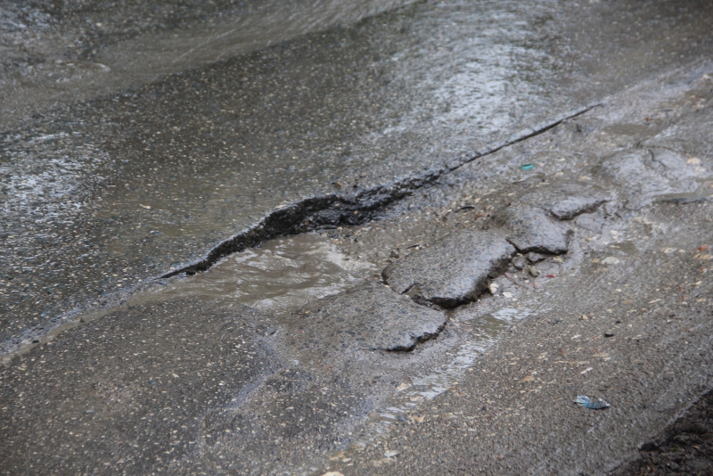 Колейность, которую не удалось полностью устранить в процессе ямочного ремонта также усложняет движение по дороге. А во время дождя колея превращается в полноводный ручей, активно разрушающий дорожное покрытие.