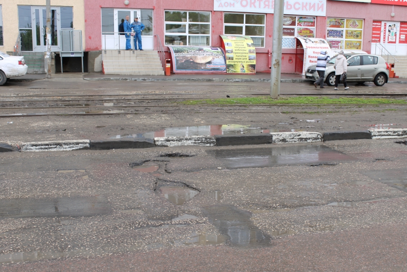 Наибольшее затруднение водители испытывают на участке рядом с бывшим кинотеатром «Родина», превращенным в торговый центр. Там обилие припаркованного транспорта и многочисленные пешеходы, в том числе и спешащие в школу дети, не оставляют водителям шанса объехать ямы.