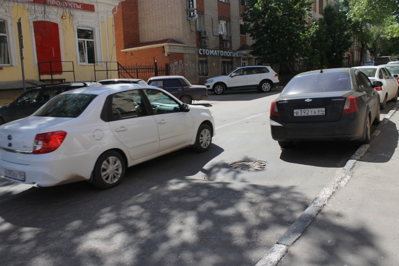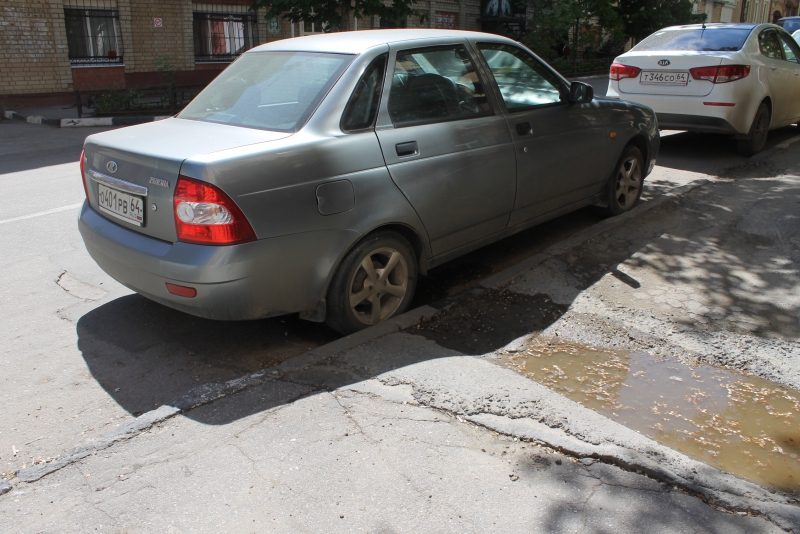 Дорожное покрытие улицы Некрасова в Волжском районе Саратова на коротком отрезке от Московской до Первомайской имеет три обширных просадки на одной полосе движения. Первая образовалась вокруг люка в нескольких метрах от перекрёстка с улицей Московской. Здесь асфальтобетонное покрытие пошло буквально волнами.