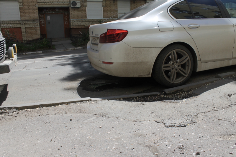 Две другие расположены далее по направлению к улице Первомайской и представляют собой провалы прямоугольной формы, заходящие на тротуар. Во всех трёх случаях просадки появились в тех местах, где проводился ремонт дорожного покрытия, - отчётливо видны границы латок, пошедшие трещинами.