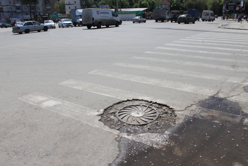 Дорожное покрытие улицы Астраханской, переходящей в улицу Танкистов в местах пересечения с Большой Горной, представляет собой скопление ям разных форм. Проехать и не угодить хотя бы в одну из них не сможет даже виртуоз вождения.