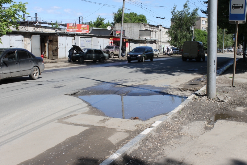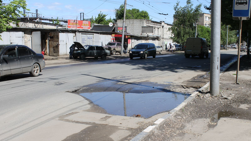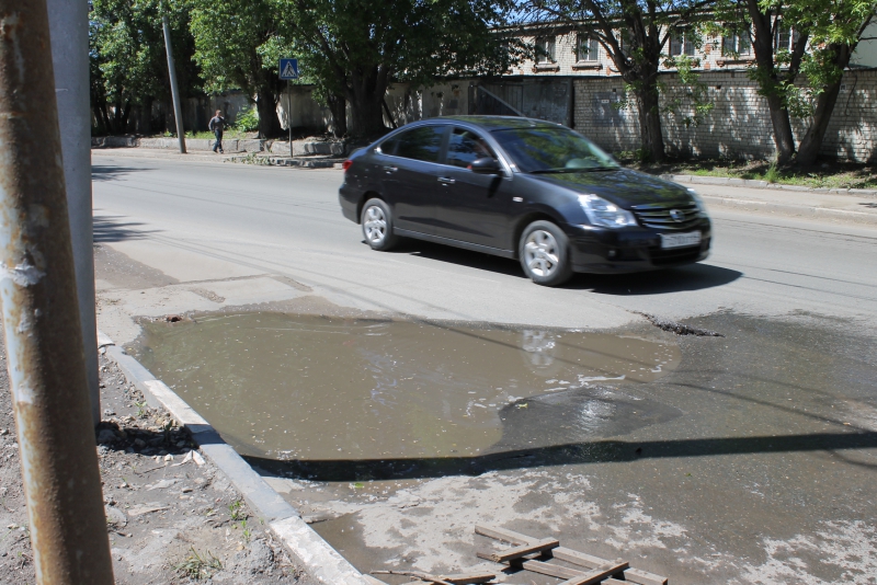 Заполненный водой провал образовался рядом с остановкой «9-я линия», где в начале весны проводились вскрышные работы. Тогда саратовцы жаловались на оставленную коммунальными службами грязь, по которой приходилось пробираться к общественному транспорту, и на отсутствие остановочного павильона, который был демонтирован перед началом работ.