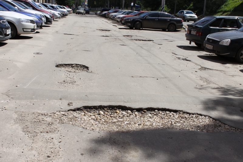 Наиболее тяжелая ситуация наблюдается около дома №60. Асфальтовое покрытие здесь выглядит так, будто было подвержено артиллерийскому удару. По словам местных жителей, ежедневно под их окнами «гробится куча машин». Глубокие ямы, кое-где присыпанные щебнем, расположены по всей ширине дороги. Перед водителями здесь стоит непростая задача: преодолеть все препятствия с минимальным уроном для ходовой части машины, разъехаться с транспортом встречного потока. Кроме того, в этих условиях нужно не совершить наезд на людей, вынужденных с покупками спускаться с крыльца находящегося здесь магазина прямо под колеса маневрирующих автомобилей.