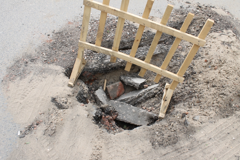 На проезжей части улицы Чапаева снова проваливаются люки