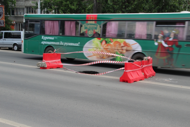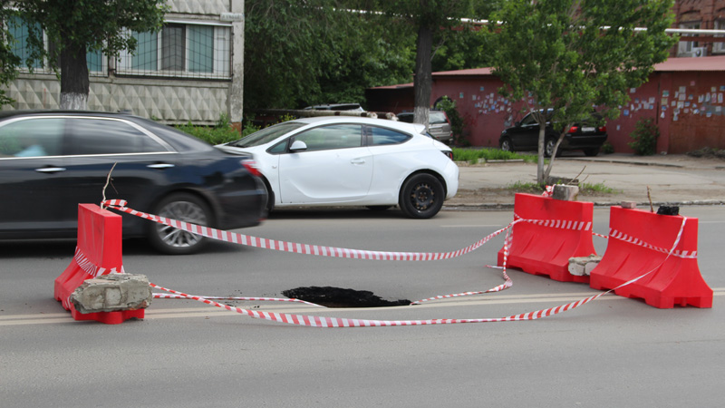 Дорожное покрытие обвалилось посередине проезжей части, создавая угрозу проезжающим автомобилям, в том числе многочисленному общественному транспорту. На данный момент глубокую яму огородили, но работ по устранению провала не ведется. Отметим, что это участок улицы Чернышевского был отремонтирован в прошлом году, но первые вскрышные работы по устранению коммунальных аварий начали проводить уже осенью.