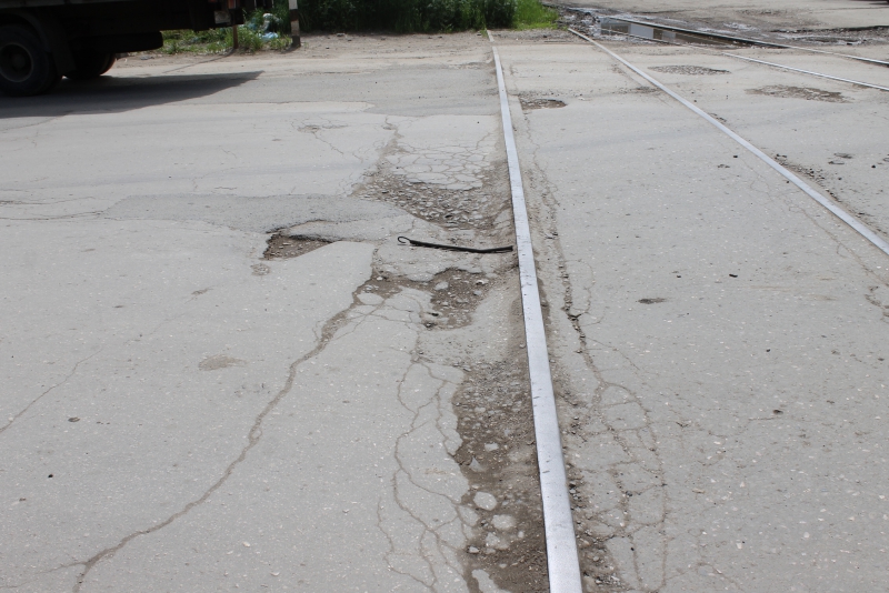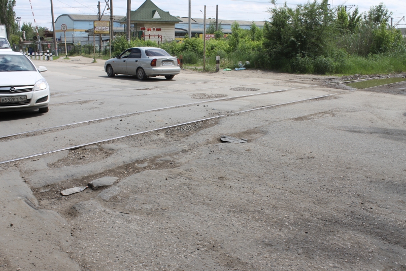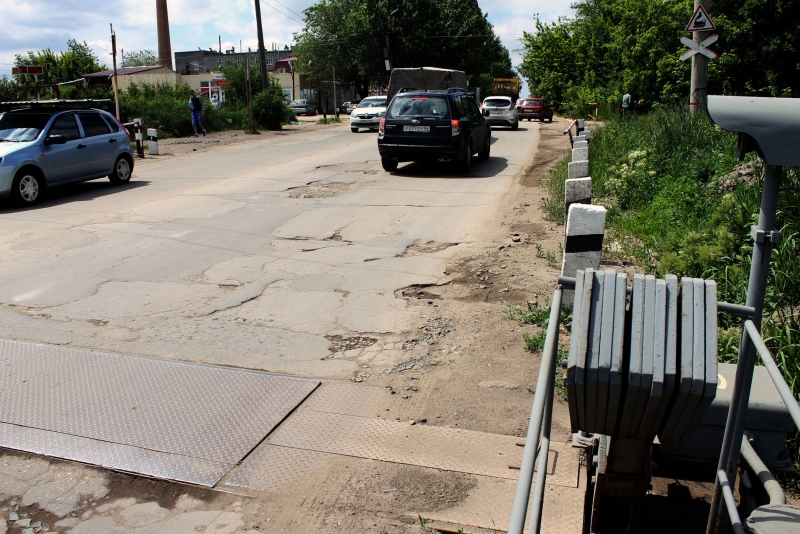 Особого внимания заслуживает состояние дорожного покрытия по обе стороны от железнодорожного переезда. Здесь на всю ширину дороги образовались глубокие ямы, выбитые буквально до грунта, что заставляет водителей очень медленно проезжать переезд и усугубляет и без того частые в этом месте заторы.