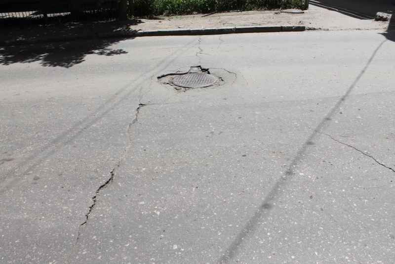 В мае прошлого года «Дорожный контроль» писал о состоянии дорожного покрытия на улице Свинцовой во Фрунзенском районе Саратова. После публикации на Свинцовой был проведен ямочный ремонт. Картину портили лишь ненормативные участки у люков смотровых колодцев. За прошедший год просевшие люки опустились ещё глубже, выбоины вокруг них разрослись, а асфальт покрылся глубокими трещинами. На фоне того, что латки после ямочного ремонта пережили зиму и держатся, удивляет безответственность владельцев коммуникаций, из-за которых потенциально эксплуатационная дорога остаётся опасной.