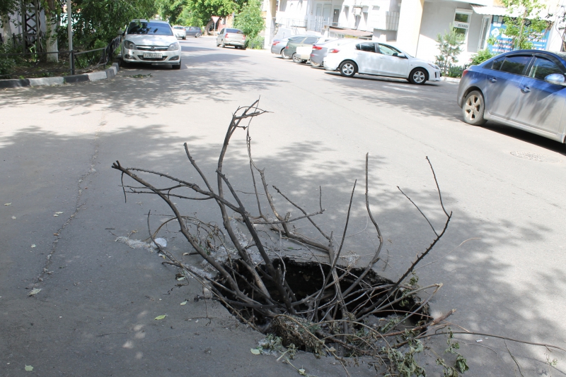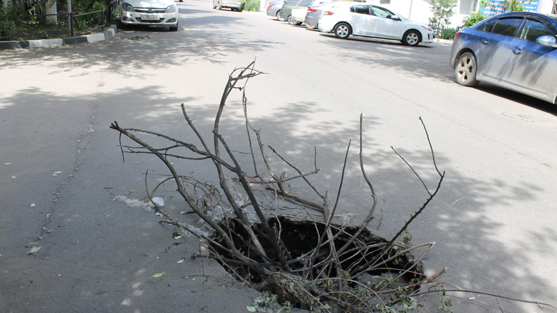 На улице Вознесенской рядом с гимназией №4 провалился асфальт