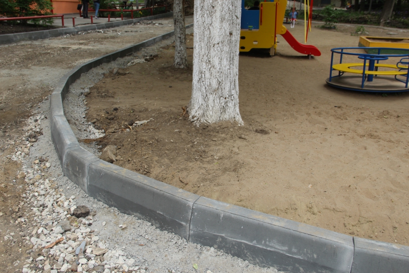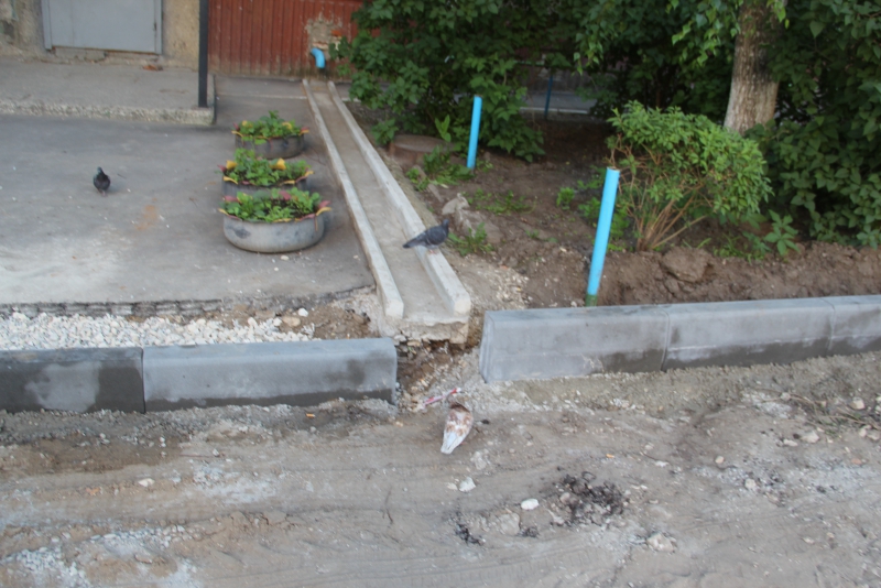 Во дворе домов по Шелковичной №184 и 184а во Фрунзенском районе рабочие на бетонное основание уже начали устанавливать бортовые камни, и пока претензий к производству работ не возникло.