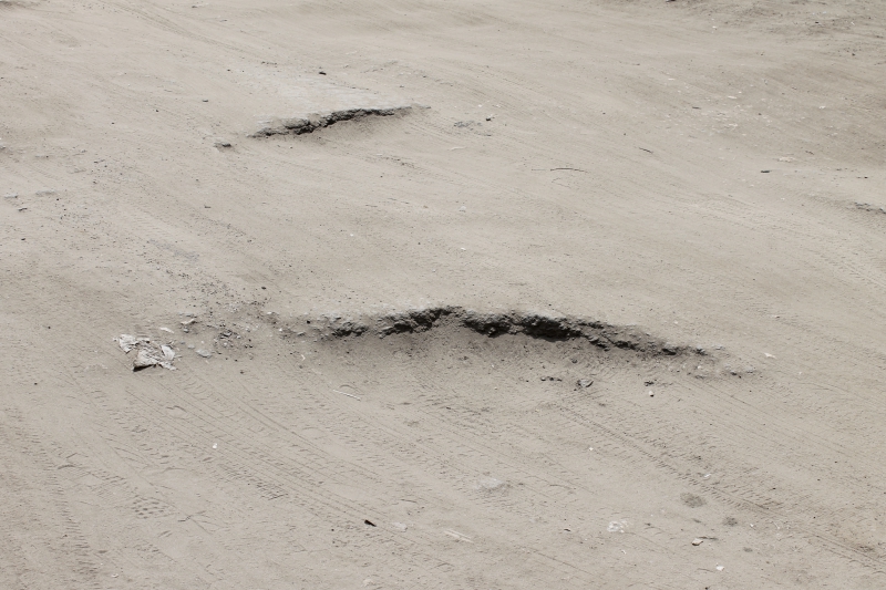 На самом деле, проезжая часть 5-го Крекингского проезда напоминает скорее пустырь, чем автомобильную дорогу. На всём своём протяжении она покрыта ухабами, глубокими ямами, выбитыми до щебня. Кое-где из земли, как останки древних цивилизаций, выглядывают довольно крупные куски бетона, встреча с которыми запросто может стоить водителю пробитого колеса. То немногое, что осталось здесь от уложенного когда-то асфальта, сегодня лишь смутно угадывается под толстым слоем грязи и пыли. Напротив дома №9/19 к вышеназванным проблемам на дороге добавляется большая канава, промытая водой.